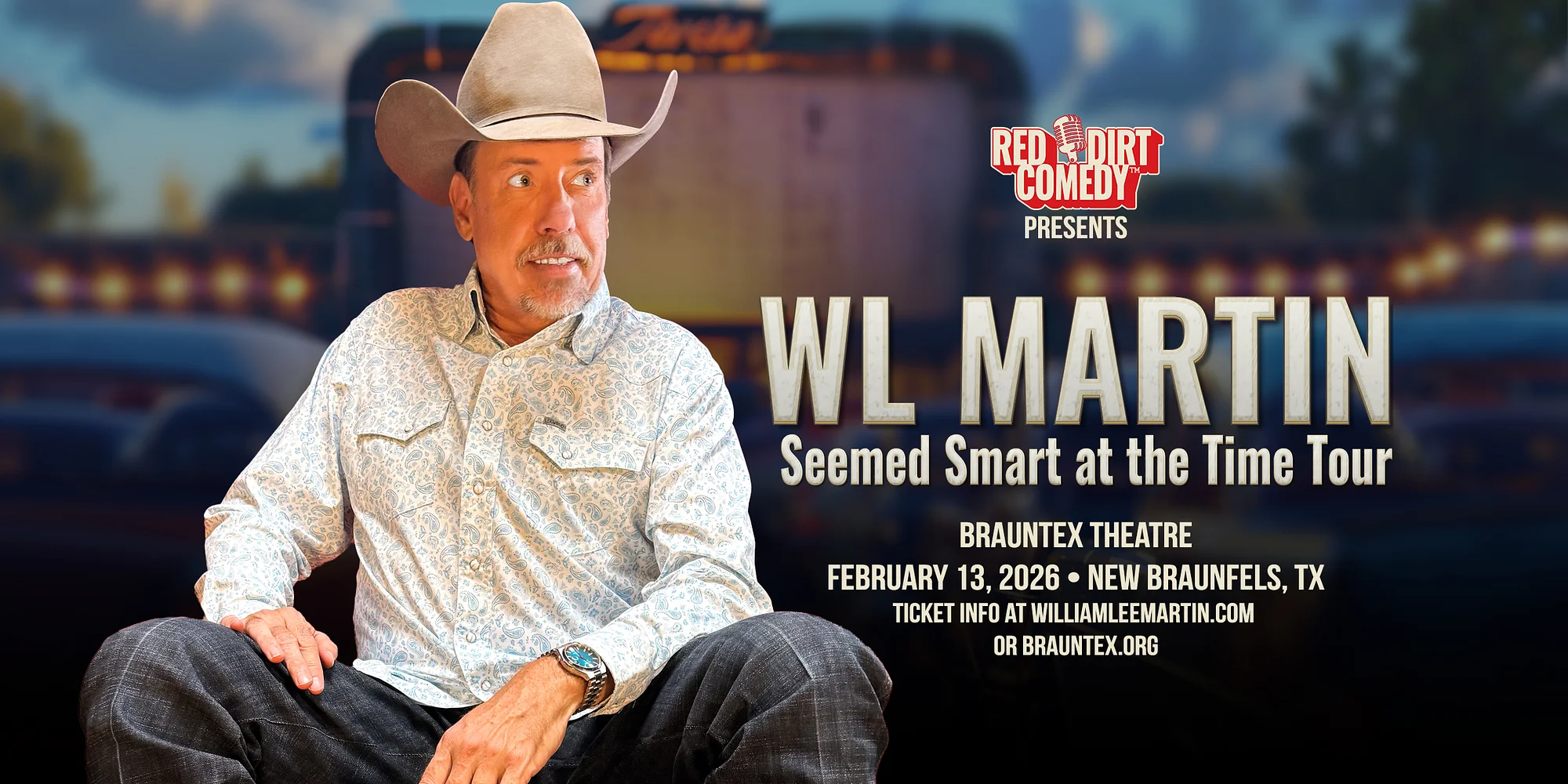 For nearly 30 years, William Lee Martin has been making America laugh with his fast-paced brand of comedy—fun, a little edgy, but never filthy. His new tour, Red Dirt Comedy Presents: William Lee Martin – Seemed Smart at the Time, delivers another round of original, heartfelt storytelling that turns everyday life into side-splitting laughter. William Lee Martin is presented by Cowtown Drive-In Productions. This event is part of our rental program mission and is not produced by the Brauntex Performing Arts Theatre. We are pleased to provide our venue as the host location for their production.