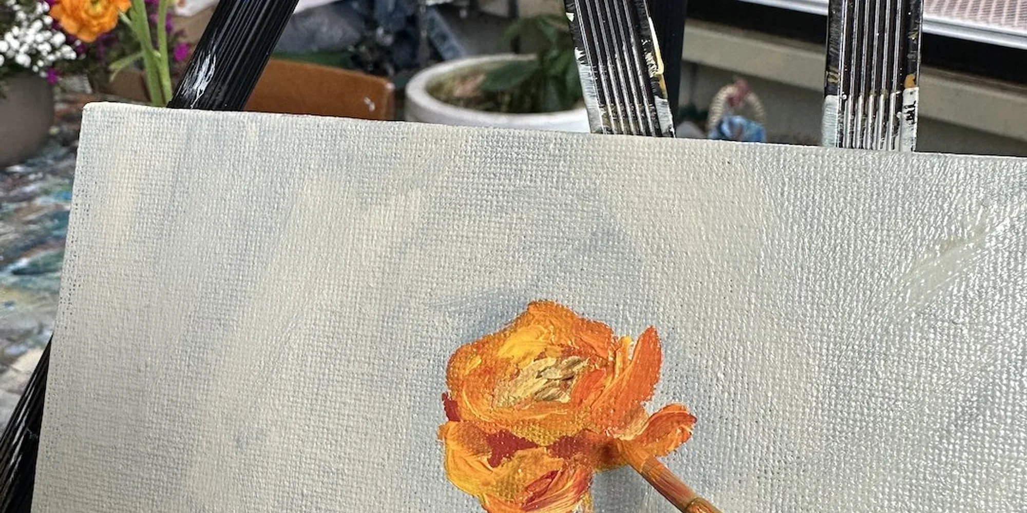 Flower and Vase - Still Life Basics with Acrylic $50 Brush up on your still life skills! In this class we'll learn how to paint classic elements of still life painting, flowers and glass! You'll receive a demonstration and personal instructions on how to capture the lighting, shape, and texture of your scene. Register HERE All materials included. We’ll be starting with 8x10’s canvas panels. If time allows you’ll have a range of canvas panels and stretched canvases to choose from for additional paintings They’ll be demonstrations and descriptions of brushes used. Please wear clothes you don’t mind getting paint on or bring an apron. The studio is located in the upstairs offices of the Fremont Commons Building. There is stair access at the entrance to the courtyard and elevator access at the rear of the courtyard. The studio is at the end of the hallway of the 201 Suites. *Cancellations made within 48 hours of the event are not subject to a credit, refund or exchange. Minors must be accompanied by an adult Register for this class here Sign up!