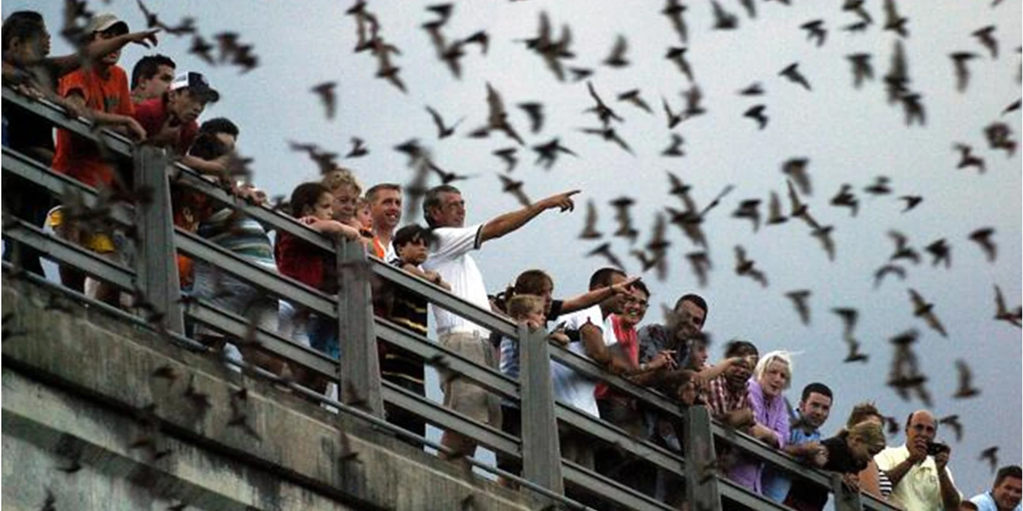 Stroll to Waugh Drive Bridge for a Bat Chat with the Houston Area Bat Team and see the bat colony up close! Did you know? These population of Mexican Free-tailed Bats at the Waugh Bridge can reach a peak of approximately 300,000 in the summer months! Around sunset, the colony leaves the crevices beneath the bridge and create a whirlwind-like formation as they emerge. Join the Houston Area Bat Team to learn and discover as they share fun, educational facts and insights about these miniature, flying mammals! Invite your family and friends, bring a picnic blanket, wear your bug spray, and admire this unique phenomena. Bat Chats are held every Friday evening from May to August as part of our Summer Species series, starting 30 minutes before sunset. Cost Free Time 7:30 – 8:30pm (30 minutes before sunset) Meeting Location Waugh Bridge Bat Colony Observation Deck (along Allen Parkway)