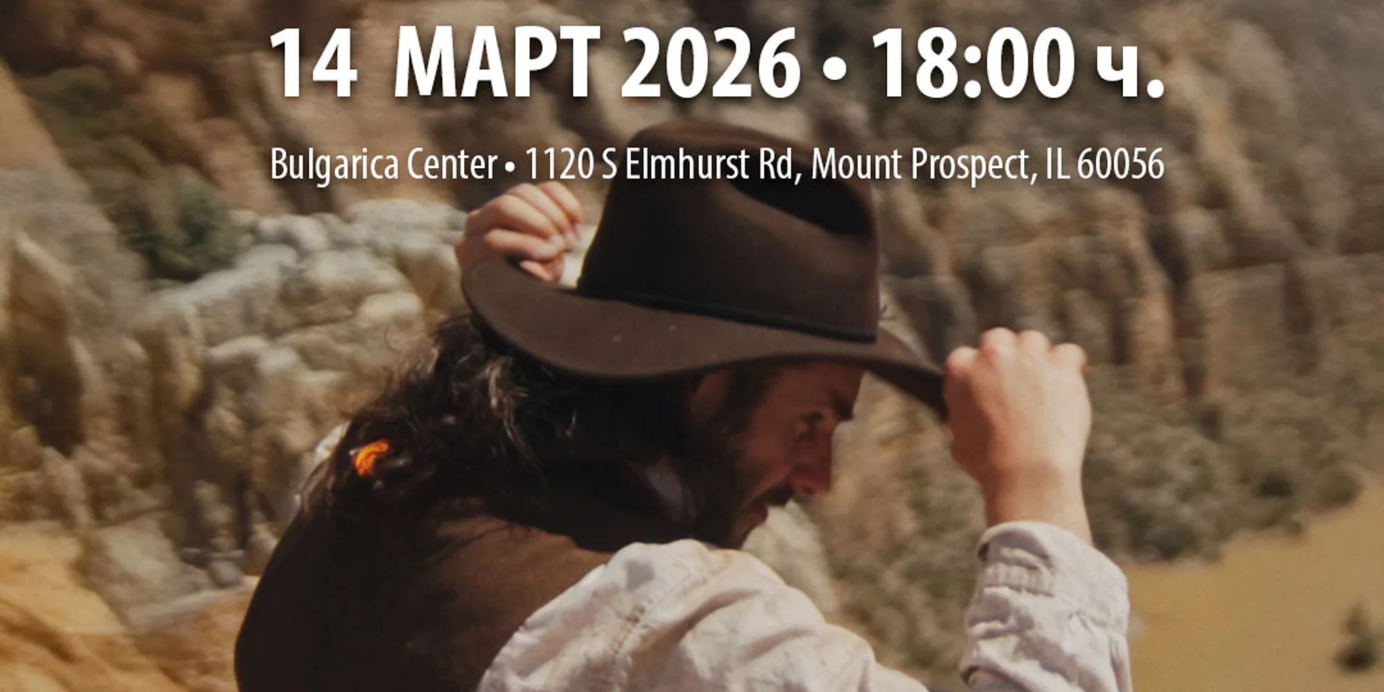 Запазете място Българика Киномания представя: „Eastern Western“ Българика Киномания и El Jinete Films ви канят на специална прожекция на игралния филм „Eastern Western“ – силна, визуално въздействаща и дълбоко емоционална история за имиграцията, семейството и търсенето на ново начало в американския Запад в края на XIX век. 🗓 Дати и часове Събота, 14 март 2026 Прожекция: 6:00 pm | Дискусия: след прожекцията 📍 Място Bulgarica Center 1120 S Elmhurst Rd, Mount Prospect, IL 60056 🎟 Цена $15 / на човек – Запазете място предварително! За филма Сюжетът проследява Игор – имигрант и вдовец, който заедно със сина си предприема опасно пътуване към Калифорния с помощта на американския коневъдец Дънкан. По пътя героите са изправени пред сурови изпитания и съдбоносен избор, който завинаги ще промени бъдещето им. Филмът е режисиран от сестрите Марина и Биляна Грозданови (Ню Йорк) и е представян на международни фестивали, включително Mill Valley Film Festival и Sofia International Film Festival, както и в Calgary, Montana и Dallas. 🎤 Q&A (само в събота) След края на прожекцията в събота ще имате възможност да се включите в отворена дискусия с актьора/продуцент Игор Галияшевич и асоцииран продуцент Дженайла Галияшевич. Организатори: Център „Българика“ и El Jinete Films Официален трейлър на филма
