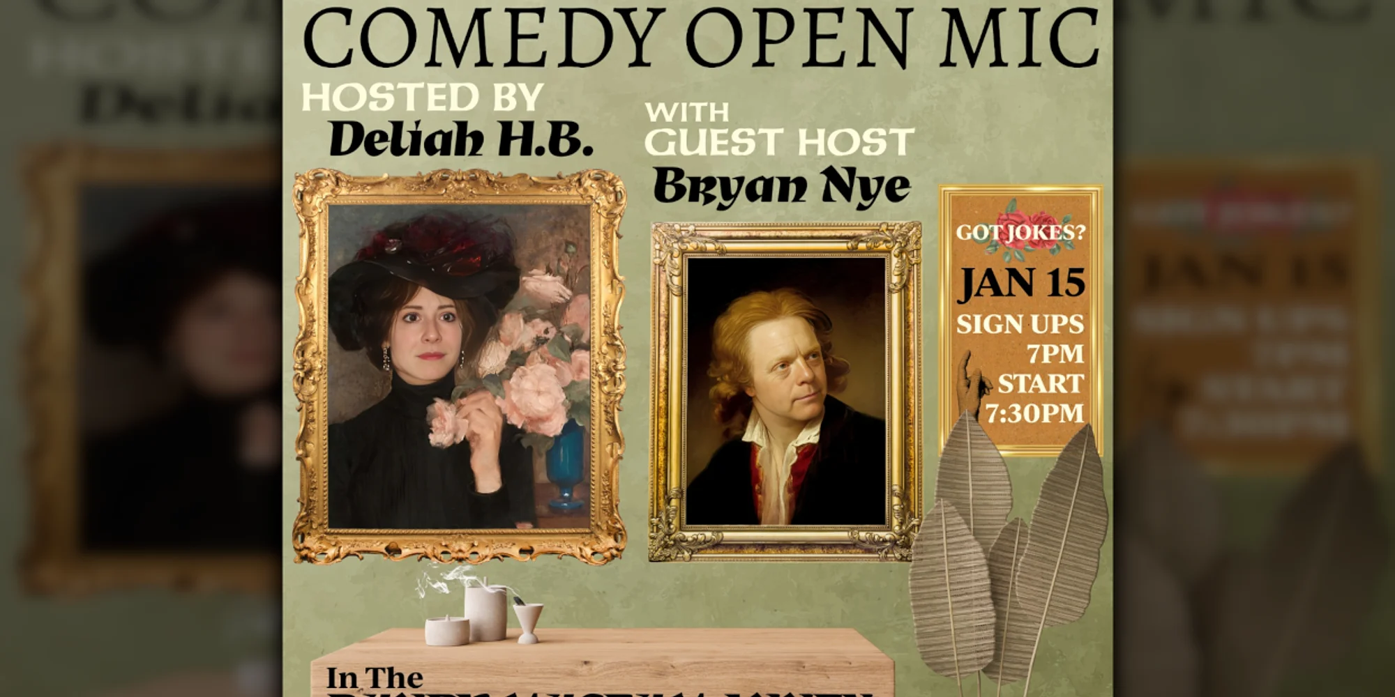 View fullsize The Bundy Museum Presents Live at the Annex Theater Comedy Open Mic Night Hosted by: Delia H.B., with Guest Host Bryan Nye Held on the 3rd Thursday of the month. Thursday, January 15th, 2026 Live at the Bundy Museum Annex Theater 129 Main St., Binghamton, NY (behind the museum) Doors open at 6:30 pm Sign-ups are at 7:00 pm Open Mic starts at 7:30 pm Ages 18+ to attend / 21+ID to drink at the Carriage House Tavern Got Jokes?! Join us for a new kind of open mic at the Bundy Museum Annex Theater. We would love to see you on stage to tell them and give everyone some comic relief. The Annex includes the Carriage House Tavern which features food, coffee, beer, and wine at our shows. Come on down and enjoy quality good food and an adult beverage. See when the next event takes place by checking out our calendar or Facebook events page. Contact Us Comedy Open Mic Night - Live at the Annex Theater The Bundy Museum of History & Art 127-129 Main St. Binghamton, NY 13905 Ph: (607) 772-9179 Email: info@bundymuseum.org https://www.bundymuseum.org/ Donate and help support The Bundy Museum: https://www.bundymuseum.org/checkout/donate... Our Social Links: https://www.facebook.com/bundymuseum https://www.youtube.com/channel/UCbOwCAvnOSE0Ej3zt4RbEZw/featured https://twitter.com/BundyMuseum https://www.instagram.com/thebundymuseum/ https://soundcloud.com/wbdy-lp WBDY-LP 99.5FM Online Radio http://www.radiorethink.com/tuner/?stationCode=wbdy&stream=hi