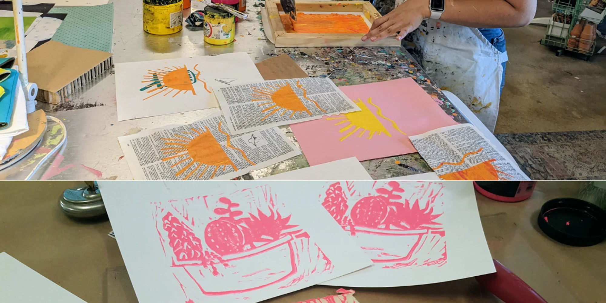 Learn the basics of screenprinting and blockprinting to create your own designs and apply them to surfaces. Play around with your new knowledge to first make super cool paper prints — using new and vintage papers — for greeting cards, bookmarks, etc. and then your final project for the day: print a bandana. No experience necessary! Sign Up at Craft
