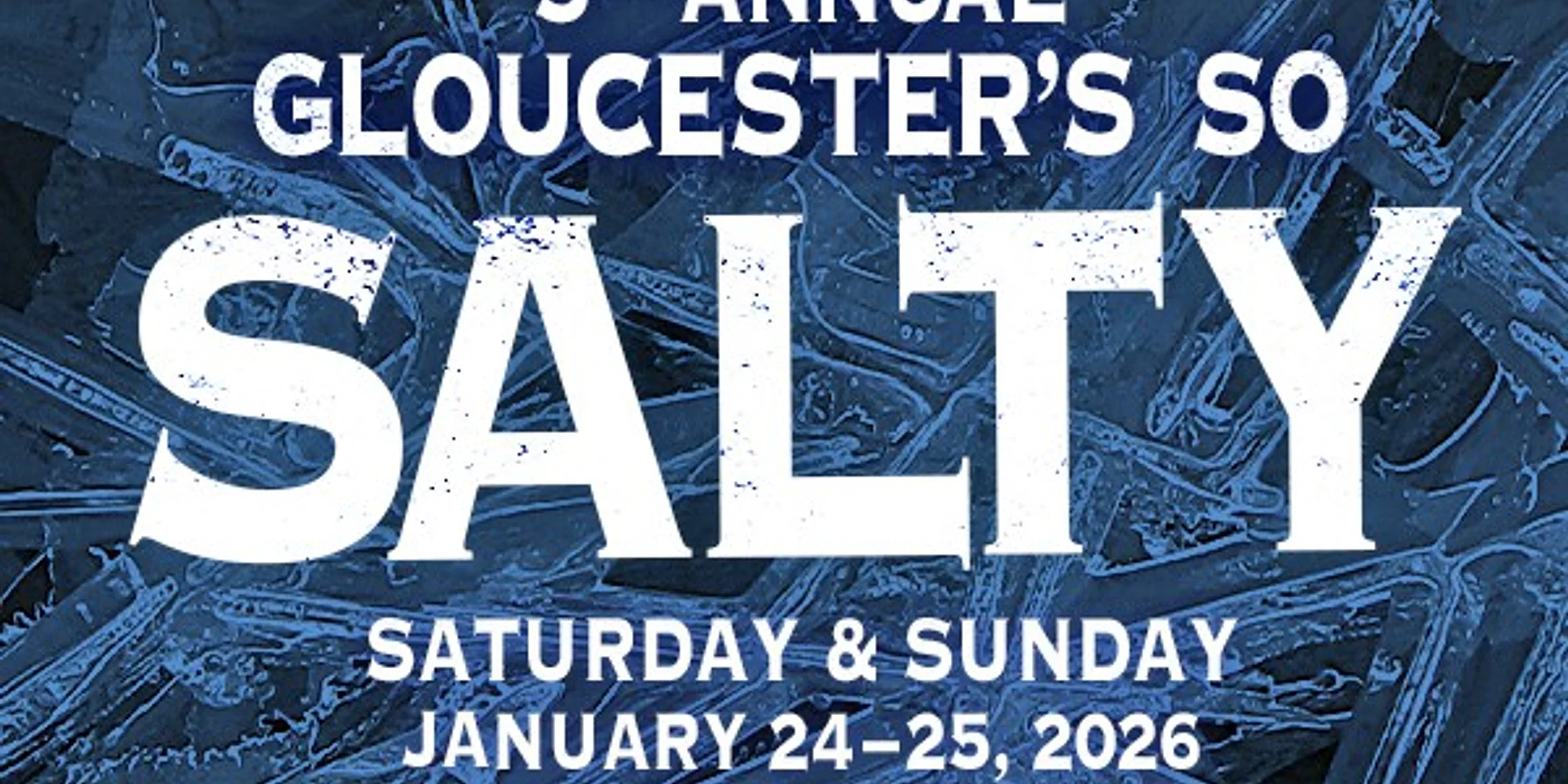 Saturday, January 24, 2026 10:00 a.m. – 4:00 p.m. Cape Ann Museum Lobby, Downtown Campus 27 Pleasant St, Gloucester, MA, 01930 Free and open to the public Join us in celebrating the fish city’s recognizably salty character with the 5th Annual Gloucester’s So Salty, a festival sponsored by the Cape Ann Museum in partnership with Discover Gloucester. This annual event brings over 2,000 people to the downtown area each January to shop at local stores, enjoy family friendly activities, visit the Museum Lobby, and find each of the ice sculptures sponsored by local cultural institutions and businesses. Gloucester’s So Salty will take place on Saturday, January 24 and Sunday, January 25, 2026 from 10:00 am – 4:00 pm! So Salty Brochure While the downtown Museum is temporarily closed for renovations, we welcome you to visit us in the Museum Lobby to grab a Brochure map of the weekend’s activities and find all the ice sculptures downtown (Hint, three are in the Museum Courtyard!). 2026 Gloucester’s So Salty Ice Sculpture Map 2026 Gloucester’s So Salty Events and Activities List Enter to Win! Stop by the Museum Lobby at 27 Pleasant St. to be entered into a drawing to win one of five family memberships to the Cape Ann Museum. Winners will be announced throughout the weekend. Free Events Saturday: Live Music, performed by Steve Dennis, 1:00 p.m. – 3:00 p.m. The Cut, 177 Main St. Sea Shanties, performed by Three Sheets to the Wind, 2:00 p.m. Gloucester Unitarian Universalist Church, 10 Church St. Mayor Lundberg reads Katy and the Big Snow, plus kids’ activities. Gloucester Lyceum & Sawyer Free Library, 2 Dale Ave. 10:30 a.m. – 11:15 a.m. Elsa’s Frozen Ice & Snow show brings stories and the science of ice together for a fun morning of learning for children! 11:30 a.m. – 12:30 p.m. on the Main Floor: Live Music Trio featuring a variety of wintertime fun including Gershwin, Disney, folk tunes, and classics. 1:00 p.m. – 1:15 p.m. Mayor Lundberg reads Katy and the Big Snow by Gloucester’s beloved author and illustrator, Virginia Lee Burton. 1:30 p.m. – 2:30 p.m. Get Salty with crafts by The Open Door and Pathways for Children. Enjoy an Open Mic and shop vintage and hand-made clothing & hats, 4:00 p.m. – 6:00 p.m. Lockwood Studios, 2-4 Eastern Ave. Sunday: Gloucester Student Band will be performing, plus enjoy games for all! 12:00 p.m. – 2:00 p.m. The Cut, 177 Main St. Enjoy Poetry Readings & Jam Session and shop vintage and hand-made clothing & hats, 2:00 p.m. – 5:00 p.m. Lockwood Studios, 2-4 Eastern Ave. Special Offers and Activities Check individual listings for days and times. Revive Wellness 10% off all treatments. Walk-ins welcome. Saturday, 10:00 a.m. – 6:00 p.m. & Sunday, 10:00 a.m. – 2:00 p.m., 232 Main St. Joe’s Fresh Fish Prints Come see Fish Printing Demonstrations! Saturday & Sunday, 11:00 a.m. – 5:00 p.m., 206 Main St. Happy Tails Shoppe 10% Off All Dog & Cat Treats. Saturday & Sunday, 10 a.m. – 4:00 p.m., 1...