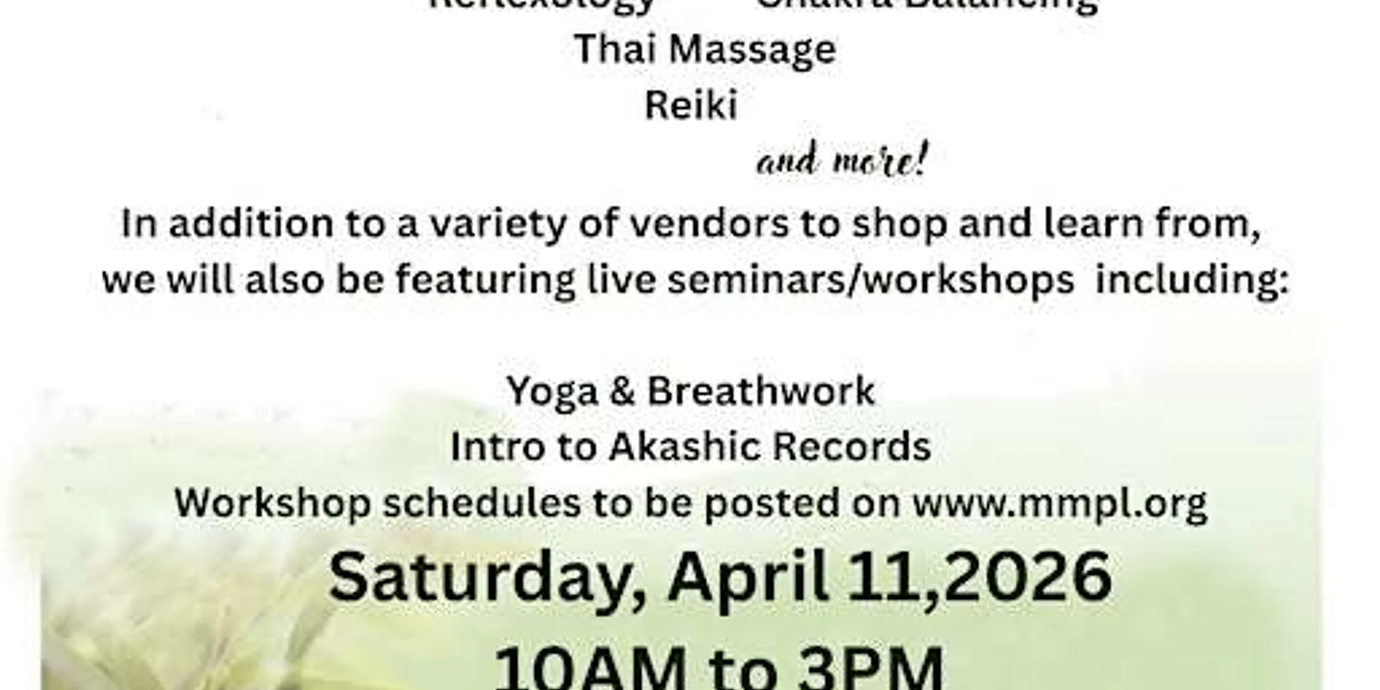 Holistic Health Fair Liberty Hall Saturday, April 11, 2026 10:00am to 3:00pm To benefit the Marstons Mills Library Join us for an immersive, community-focused event designed to promote well-being by addressing the mind, body, and spirit. The Fair will connect attendees with local practitioners, offering services like yoga, energy healing, massages, and workshops on nutrition and mindfulness, while featuring vendors selling organic, sustainable products.