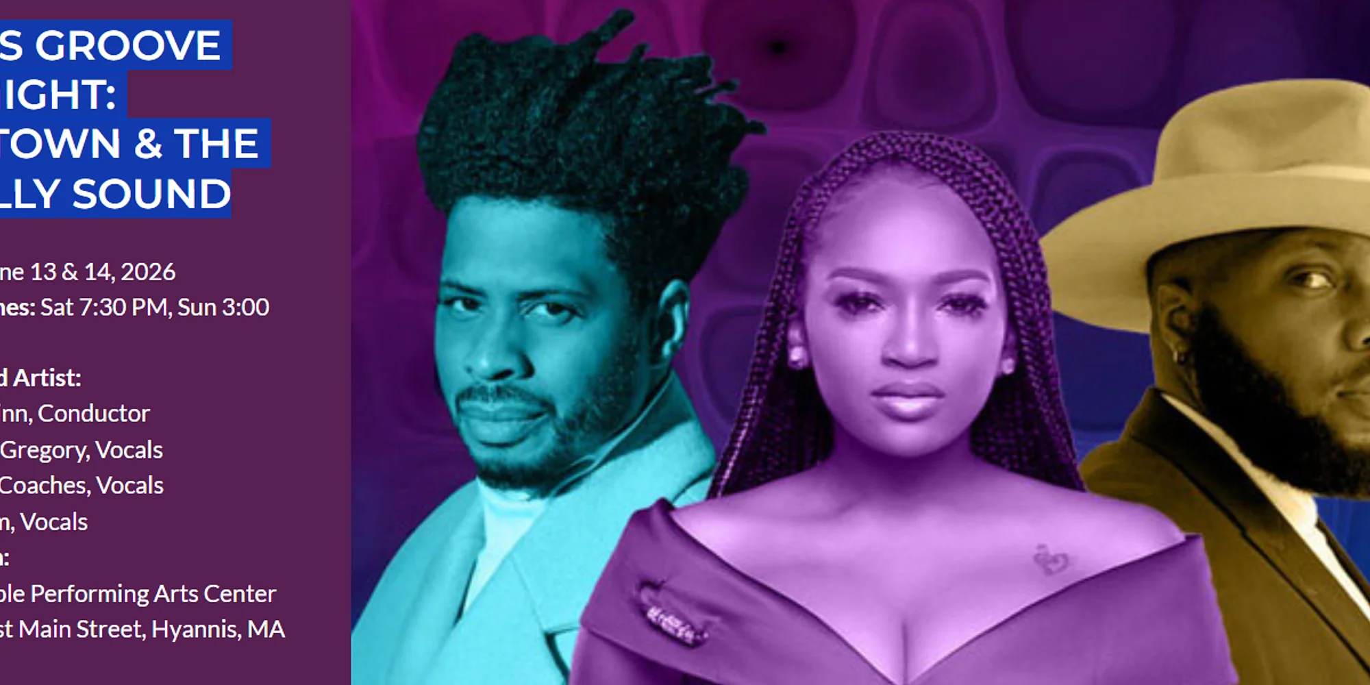 CapePOPS! 5 Let’s Groove Tonight: Motown & The Philly Sound Date: June 13 & 14, 2026 Showtimes: Sat 7:30 PM, Sun 3:00 PM Motown soul and R&B paired with great hits of the Philly Sound mean double the fun at this electrifying concert experience full of phenomenal songs made famous by Earth, Wind & Fire, Diana Ross, Lou Rawls, The Temptations, The O’Jays, and more. This show is pure excitement, led by Broadway superstar Chester Gregory and vocal powerhouses Cherise Coaches and Brik.Liam alongside your Cape Symphony Orchestra musicians. Motown smash hits including What’s Going On, I Heard It Through The Grapevine, I’m Gonna Make You Love Me and I’m Coming Out share the stage with Philly Sound hit songs including Ain’t No Stopping Us Now, You’ll Never Find A Love Like Mine, Love Train and You Make Me Feel Brand New. Let’s groove! Tickets available at: https://www.capesymphony.org/buy-tickets-lets-groove-tonight