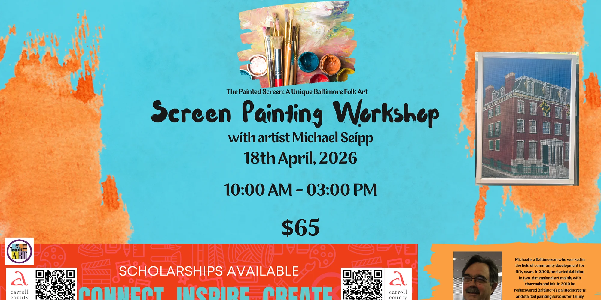 Instructor Name: Michael Seipp www.baltimorescreenpainter.org The Painted Screen: A Unique Baltimore Folk Art Date and time: Saturday 4/18 10-3 pm Minimum Age of Student: 12 and up Materials Fee & List of What Fee Covers OR kit contents: · Screening · Paint · Brushes · Compositions · Envelope Frame · All miscellaneous materials Workshop Description: · The Baltimore Painted Screen Workshop consists of: · A presentation on the history of this unique Baltimore Folk Art – Approx. 60 minutes · Painting a miniature screen – 2 to 3 hours · Collecting the screens – 15 minutes post workshop · The miniature screen is approx. 8 by 10 inches and will be take home in a black envelop frame. · Compositions will be provided for any folks who are not comfortable yet with their artistic skills. Register Here