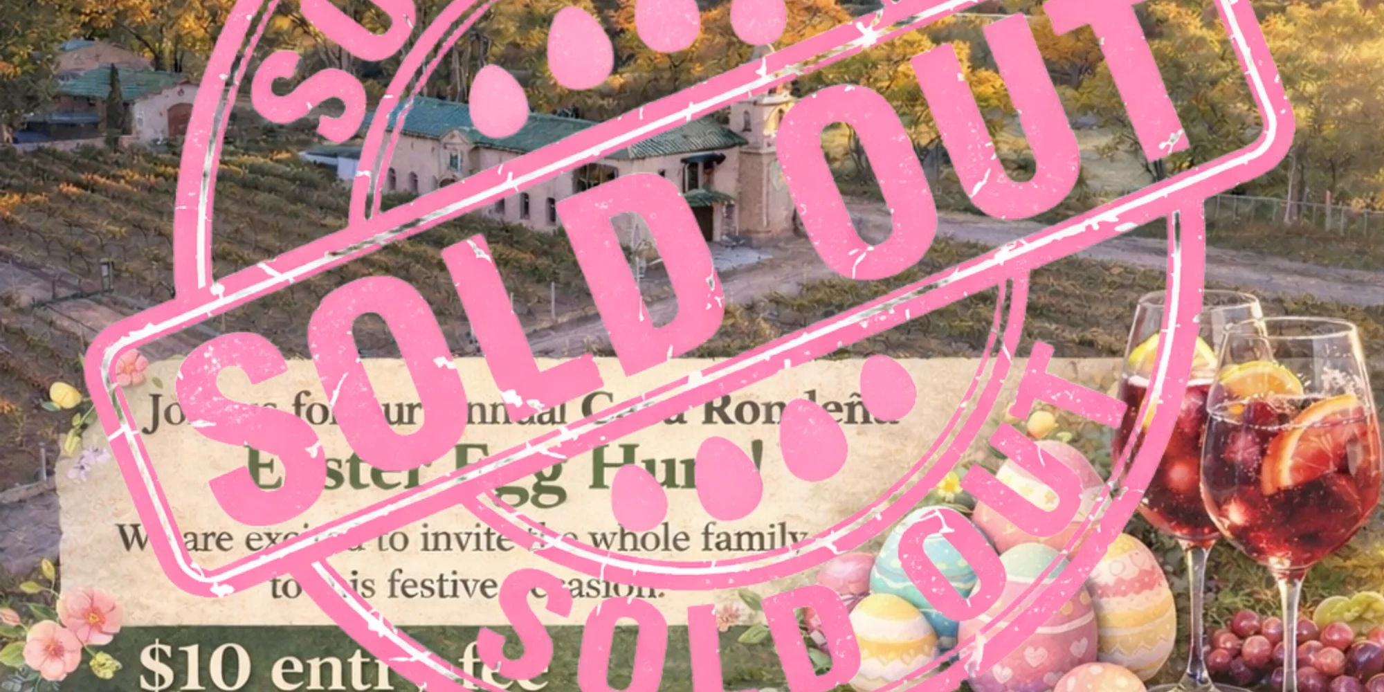 The Easter Egg Hunt has officially reached full capacity and is now sold out! However, we still have raffle tickets available for our adult Easter basket giveaway. We’re so egg-cited to invite the whole family to join us for a day full of springtime fun. The Easter Bunny will be hopping through the winery, leaving a trail of colorful eggs just waiting to be found! Bring your best-dressed littles to enjoy the Easter egg fun! 🎟️ $10 entry for children ages 10 and under 🕚 Check-in at 11:00 AM 🥚 Egg hunt begins promptly at 11:30 AM 🐰 Bunny petting zoo from 12:00–2:00 PM While the kids are on the hunt, adults can sip on our egg-cellent Easter sangria 🍷. Stick around for an egg-citing Easter basket raffle, live music, delicious food, and of course, plenty of wine to go around. 🎟️🥚Register Now!