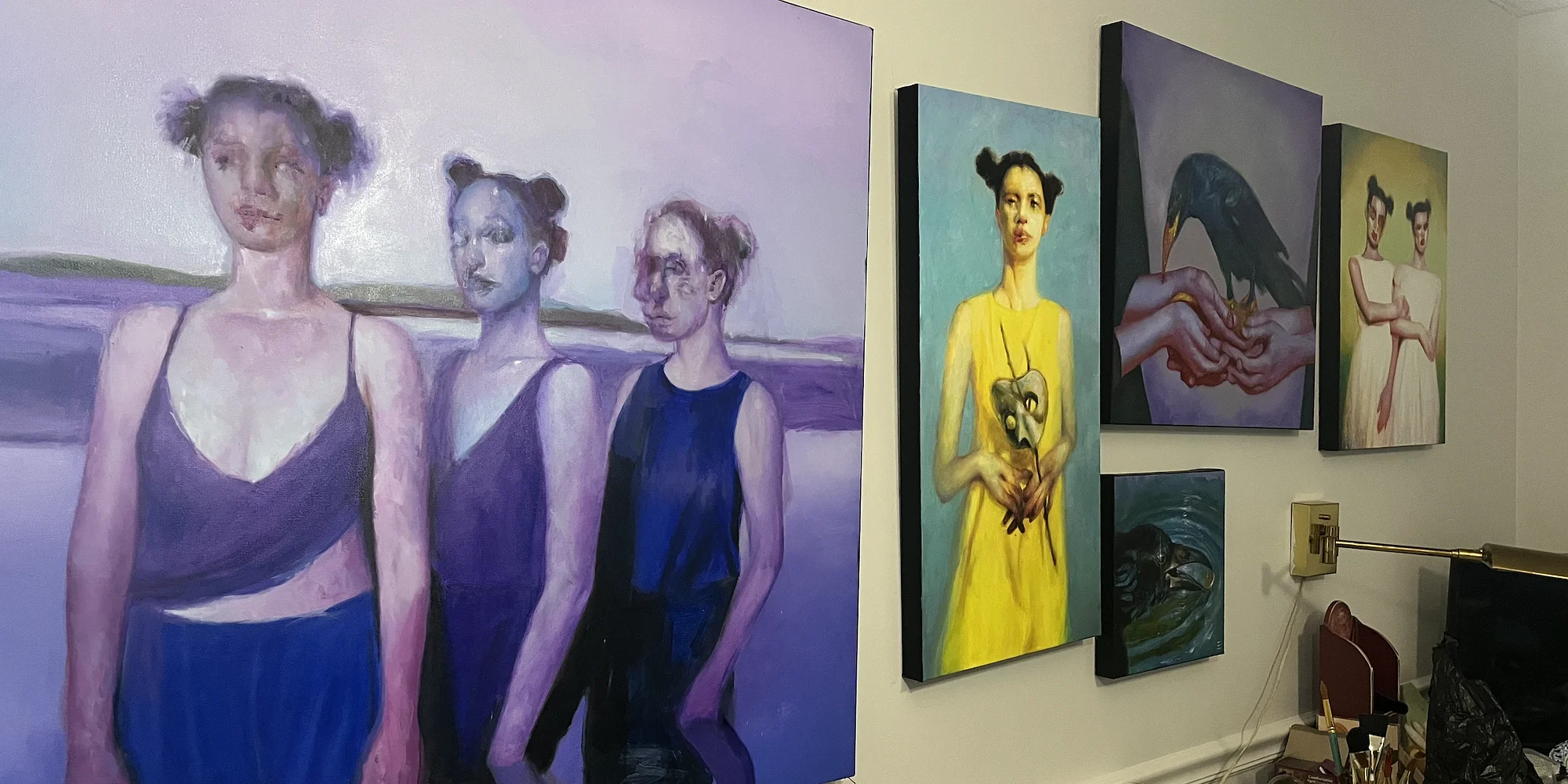 RSVP HERE Cat Eye Creative is excited to present Erin Nicole Henry’s second Solo Exhibition with the gallery “Generation Error” opening Friday, April 10th. Erin is a phenomenal local oil painter with an impressive collection of work to speak for it. Join us Friday, April 10th for a stellar exhibition and tasty refreshments from our friends. Artist Statement Generation Error is a response to artificial Intelligence—not as a rejection, but as a reckoning. As art becomes increasingly more effortless, infinite, and frictionless, I return to the slow insistence of the hand. Each mark records time, doubt, revision, but most of all, presence. These works insist on the human trace. You begin with an offer of a “coin” from a friendly crow. This admits entry into a surrealistic world where, as you go, a cast of characters present themselves— The Welcoming Committee, The Mask Maker, The Oracles, The Outcasts. You will regard witnesses, wanderers, and more. Each has their own intention, perhaps friendly or maybe not, but there will be sacrifices along the way. As you explore, see how your presence causes a disruption, of sorts. This place is unstable— part dream, part aftermath. Spaces and bodies bend. Light behaves strangely. The familiar becomes slightly untrustworthy. The figures are not portraits of people so much as portraits of states of being—confusion, awe, grief, curiosity, tenderness—felt in a time when the boundary between the organic and the synthetic is increasingly porous. What does authorship feel like when creation no longer requires touch? What happens to memory, imagination, and myth when they are melted and mirrored back to us by machines trained on our collective past? Rather than offering answers, this collection creates a space to wander. It is an insistence on presence. On slowness. Ultimately, on the imperfect, expressive mark as evidence that a person stood here, wrestled with an image, and left something human. Enjoy your time spent here, and hope your new acquaintances will remember the way out. Email info@cateye-creative.com to receive the Collector's Catalog first. Gallery Hours Wednesday-Saturday 11am-6pm Sunday 11am-5pm CONNECT HERE FOLLOW US ON INSTAGRAM RSVP HERE