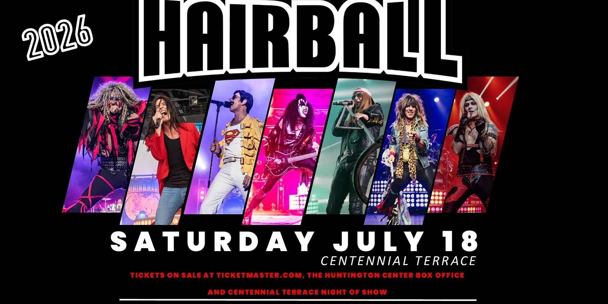 On Sale Date: January 23rd, 2026 Online at www.ticketmaster.com or in person at the Huntington Center Box Office (500 Jefferson Ave. Toledo, Ohio 43604) Click here to buy tickets Additional Show Info: Doors @ 6:30pm / No outside food or beverage / Small folding chairs allowed (General Admission area) / Rain or Shine event / Umbrellas not permitted / Parking $10 (Centennial Lot) / Smoking allowed in designated areas only IT’S LIKE 20 CONCERTS IN ONE NIGHT! A band puts on a concert – Hairball puts on an event! Hairball is a Rock & Roll experience you won’t soon forget. The lights, sound, smoke, fire, bombs, and screaming hordes of avid fans…to merely call it a concert would be like calling Mount Rushmore a roadside attraction! Vocalists Joe Dandy, Kris Vox, and Dave Moody lead the band through a 2+ hour, mind-blowing, and drop-dead accurate homage to some of the biggest arena acts in the world. Van Halen, KISS, Motley Crue, Queen, Journey, and Aerosmith are but a few of the acts fans will see brought to life. The Hairball stage becomes an entirely new rock concert before your very eyes countless times throughout the night. The motor that drives the Hairball dragster consists of HBK on the electric bass, Billy on the drums, and Happy on the lead guitar. These Rock & Roll soldiers pride themselves on nailing some of the most memorable licks and chops of all time, while adding their own style and flare that they’ve cultivated over decades of tireless performing. This isn’t a side job. These guys eat, sleep and breathe Rock & Roll! 2024 finds Hairball celebrating its 24th year of rocking hundreds of thousands of people across the country. Constantly adding more characters, more pyrotechnics, more lights, more sound, more props, more surprises…more everything! While Happy often tells the audience “Today is the first day is the rest of your life!” Hairball performs every show as though it could be their last. Every night is a 100% full-on, no-holdsbarred, exciting, chaotic, fiery party that must be experienced to be believed!