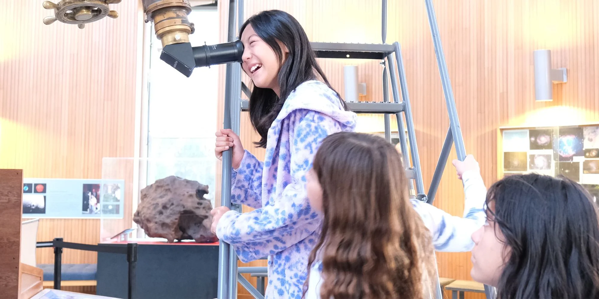 Girls Overnight $110 Scout Youth & Adult Designed for Grades 4-5 Buy Tickets Spend the night under the stars at the Cosmic Camp-In at Chabot Space & Science Center, designed especially for girls ready to investigate the science of our nearest star. This special Sharing the Sun overnight celebrates the Sun through brand-new solar science activities developed to bring the latest discoveries to life. Girls will explore how the Sun produces light and energy, discover what makes the corona so fascinating, and learn how scientists use space missions like NASA’s MUSE and PUNCH to better understand our dynamic star. Groups & Junior Troops: Reserve your space by completing the group reservation form here. Individual Scouts & Families: Purchase tickets using the buy tickets link. Arrival & Check-In Check-in begins at 5:15 PM at the Observatory located at the rear of the Center. Please park in the front parking structure and bring all overnight gear with you to the rear check-in location. We recommend packing lightly, as you will carry your items. Program begins promptly at 5:50 PM Event concludes at 8:30 AM the following morning. Guests may not enter the Center prior to the 5:15 PM check-in time. Featured Workshop: Sharing the Sun – Space Science Investigator Juniors will build their solar science skills through hands-on exploration and interactive investigations inspired by real NASA missions. Participants will: Discover how the Sun generates light and heat Explore sunspots, solar flares, and the Sun’s corona Model how energy travels from the Sun to Earth Investigate how scientists use tools and spacecraft like MUSE and PUNCH to observe solar activity Analyze simple solar data and visual evidence to understand patterns in solar behavior Create solar-inspired art connecting science and creativity This immersive overnight experience fulfills components of the Junior Space Science Investigator Badge through Chabot’s museum-based adaptation of astronomy programming. Your Camp-In Includes: Catered hot dinner provided by La Casa de Maria (subject to change) Interactive exhibit exploration and themed scavenger hunt Specialized solar science workshop Live Zeiss Planetarium show Telescope viewing (weather permitting) Continental breakfast 1 Mission Patch To ensure the safety of all guests, adults who purchase tickets without a child will not be granted entry and will not receive a refund. Adults must be accompanied by a child, and children must be accompanied by an adult. This policy is strictly enforced for all Camp-In events. Prepare for Your Overnight Adventure Please review our Survival Guide prior to arrival for packing tips, expectations, and event details. We can’t wait to shine a light on the science of the Sun with you!