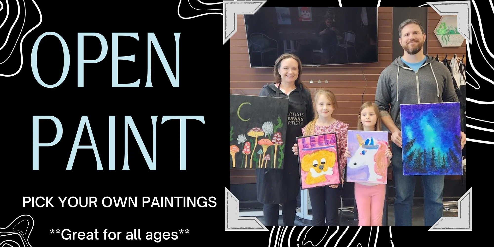 Class Details Open Paint- Pick your Own Painting: Great for all ages Welcome to Cheers N Paint! We are glad you’ve signed up for an Open Paint Session. Open Studio is an in person, in-studio paint class, great for all ages. Pick your favorite canvas from our art gallery and paint with limited instruction. All art materials are included: canvas, paint, brushes. No experience necessary. Please come 15 minutes before the paint class start time. Have time to set up, settle in, relax, and get ready to have fun creating. Our classes start promptly. What to Expect at a Cheers N Paint Art Studio Sip and Paint Class Thank you for considering the Cheers N Paint Art Studio in Cary, NC for your next sip and paint class. At Cheers N Paint, our goal is simple: to help you relax, have fun, and create memories with paint! Whether you’re a beginner or an experienced artist, our talented instructors will guide you step-by-step so you’ll leave with a masterpiece you’ll be proud to display. We customize our instruction to all levels, so everyone can enjoy our classes. We want everyone to have a great experience at our studio, so we ask that you arrive 15 minutes before the sip and paint class start time, as our classes start promptly. This gives you time to set up, settle in, grab a drink and snack, and relax as you get ready to have fun creating. Sip and Paint Classes for Every Occasion Adult painting classes are a fun and creative way to spend time with family and friends! Whether you’re looking for a casual night out or celebrating something special, Cheers N Paint Art Studio makes it easy. Our Sip and Paint Classes are perfect for: Date night Girl’s night out Family reunions Team-building events Birthdays Anniversaries Special occasions TGIF nights Gatherings with friends, coworkers, neighbors, sorority sisters, club members, etc What’s included in our Sip and Paint Class packages (both in-studio and virtual live painting classes): All art materials (16×20 canvas, paint, brushes) Step-by-step live instruction from a talented artist, personalized to each customer A relaxed, fun environment where everyone is encouraged to find their inner artist and leaves with a finished painting What’s included in our Live Virtual Paint Classes: To-go kits available with all materials you need to paint at home (arrangements required in advance) Live online instruction so you can paint with friends from anywhere To-go kit pickup available at our Cheers N Paint Art Studio in Cary, NC, with delivery in some cases At Cheers N Paint, every sip and paint class is designed to help you relax, have fun, and create lasting memories. Why Choose Cheers N Paint Art Studio in Cary, NC Our spacious, family-friendly paint and sip Cary studio offers paint classes during the day and evening to fit your schedule. Typically, our evening classes are best suited for ages 16 and up. Afternoon classes are offered for younger children. A paid adult must accompany ...