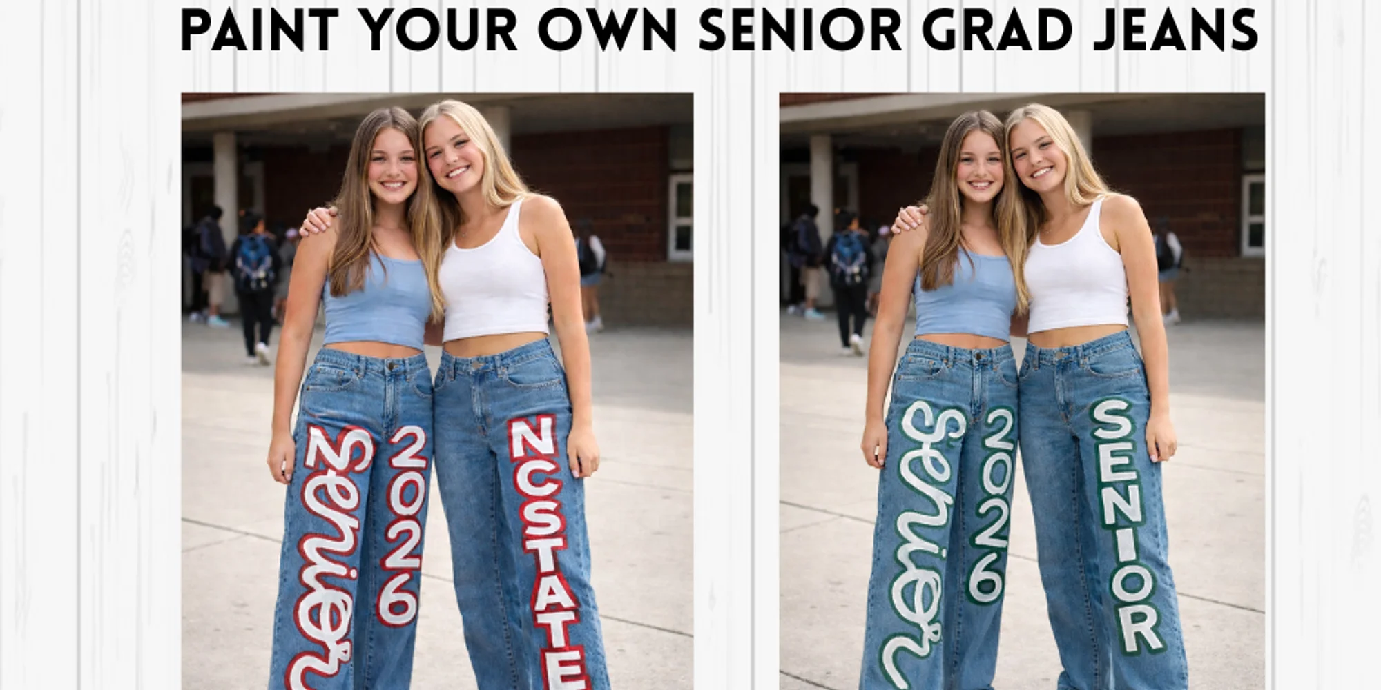Class Details Paint your Grad Jeans – High School or College Welcome to Cheers N Paint! We are glad you’ve signed up for Paint your Grad Jeans – High School or College . This is an in person, in-studio paint class, great for all ages. Pick your favorite canvas from our art gallery and paint with limited instruction. All art materials are included: Stencils, Rhinestones paint, brushes. YOU MUST BRING YOUR OWN JEANS OR OVERALLS . No experience necessary. Please come 15 minutes before the paint class start time. Have time to set up, settle in, relax, and get ready to have fun creating. Our classes start promptly. What to Expect at a Cheers N Paint Art Studio Sip and Paint Class Thank you for considering the Cheers N Paint Art Studio in Cary, NC for your next sip and paint class. At Cheers N Paint, our goal is simple: to help you relax, have fun, and create memories with paint! Whether you’re a beginner or an experienced artist, our talented instructors will guide you step-by-step so you’ll leave with a masterpiece you’ll be proud to display. We customize our instruction to all levels, so everyone can enjoy our classes. We want everyone to have a great experience at our studio, so we ask that you arrive 15 minutes before the sip and paint class start time, as our classes start promptly. This gives you time to set up, settle in, grab a drink and snack, and relax as you get ready to have fun creating. Sip and Paint Classes for Every Occasion Adult painting classes are a fun and creative way to spend time with family and friends! Whether you’re looking for a casual night out or celebrating something special, Cheers N Paint Art Studio makes it easy. Our Sip and Paint Classes are perfect for: Date night Girl’s night out Family reunions Team-building events Birthdays Anniversaries Special occasions TGIF nights Gatherings with friends, coworkers, neighbors, sorority sisters, club members, etc What’s included in our Sip and Paint Class packages (both in-studio and virtual live painting classes): All art materials (Sentcils, paint, brushes) MUST BRING YOUR OWN JEANS Step-by-step live instruction from a talented artist, personalized to each customer A relaxed, fun environment where everyone is encouraged to find their inner artist and leaves with a finished painting. At Cheers N Paint, every class is designed to help you relax, have fun, and create lasting memories. Why Choose Cheers N Paint Art Studio in Cary, NC Our spacious, family-friendly paint and sip Cary studio offers paint classes during the day and evening to fit your schedule. FOR COLLEGE SENIORS: At Cheers N Paint, we want you to feel at home at our studio, so you’re welcome to “kick it up a notch” and bring your own drinks and snacks to make your wine and paint night extra special. Cheers N Paint is a BYOB studio, and drinks (including beer, wine, cider, and seltzer (less than 16% alcohol by volume)) are permitted. You must be 21 years old to consume alcoholic b...