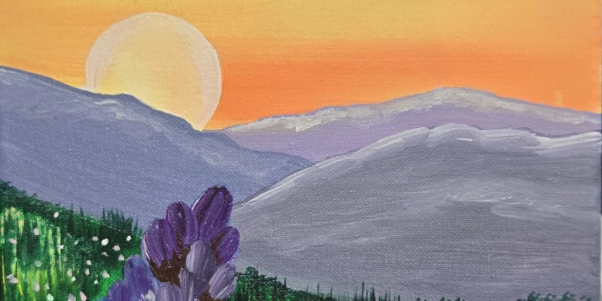 Class Details Sunset Lavender Meadow Sip and Paint Class This painting with a vivid sense of depth and atmosphere — the glowing sun ,purple mountains, wild flowers in the glowing meadow. What you can expect at a Cheers N Paint Art Class Thank you for considering the Cheers N Paint art studio where our goal is to help you create memories with paint! We are glad you’ve signed up for the Sunset Lavender Meadow Sip and Paint Class and Saturday May 9th 7 to 9 pm. We want everyone to have a great experience at our studio. Our classes start promptly. Please come 15 minutes before the paint class start time. That way you’ll have time to set up, settle in, relax, and get ready to have fun creating. Painting is a relaxing, fun, and creative experience for all ages and abilities. No experience is necessary as our talented artist instructors are here to help you create a masterpiece. Experienced artists also enjoy our classes as we customize instruction to all levels. Paint parties are great way to spend time with family and friends. Come for a date night, girl’s night out, family reunion, or just to TGIF. Get together with friends, coworkers, neighbors, sorority sisters or club members. Celebrate a special occasion like a birthday or anniversary and leave with a painting as a memory of the day! Be it in studio or a live, virtual painting class, we provide all the art materials you’ll need to paint your masterpiece. Art materials include a 16 x 20-inch canvas, paint, brushes along with live instruction personalized to each customer. Our talented instructors paint with you, provide step by step instruction and help you find your inner artist. For live virtual paint parties, we provide a “to go” kit including all the art materials you need to paint at your place. Delivery may be available or pick up your kit at our studio. Please contact us and make arrangements in advance of the paint party date for virtual paint events and “to go” kits. Our spacious studio is family-friendly, and we offer paint classes during the day and evening to fit your schedule. Typically, our evening classes are best suited for ages 16 and up. Afternoon classes are offered for younger children. A paid adult must accompany children 14 and younger to class. For afternoon classes, an adult may bring children under 14 without paying for a class, however a fee is required if the adult paints. Studio seating is limited for your comfort, safety and to allow for personalized instruction. Please feel at home at our studio. You are welcome to “kick it up a notch” and make your paint class a party with food and drinks. Cheers N Paint is a BYOB studio and drinks, including beer, wine, cider, and seltzer (less than 16% alcohol by volume) are permitted. You must be 21 years old to consume alcoholic beverages in our studio. Proper I.D. is required. You are welcome to bring snacks or other goodies too. There is plenty of space in the studio for you to set up your t...