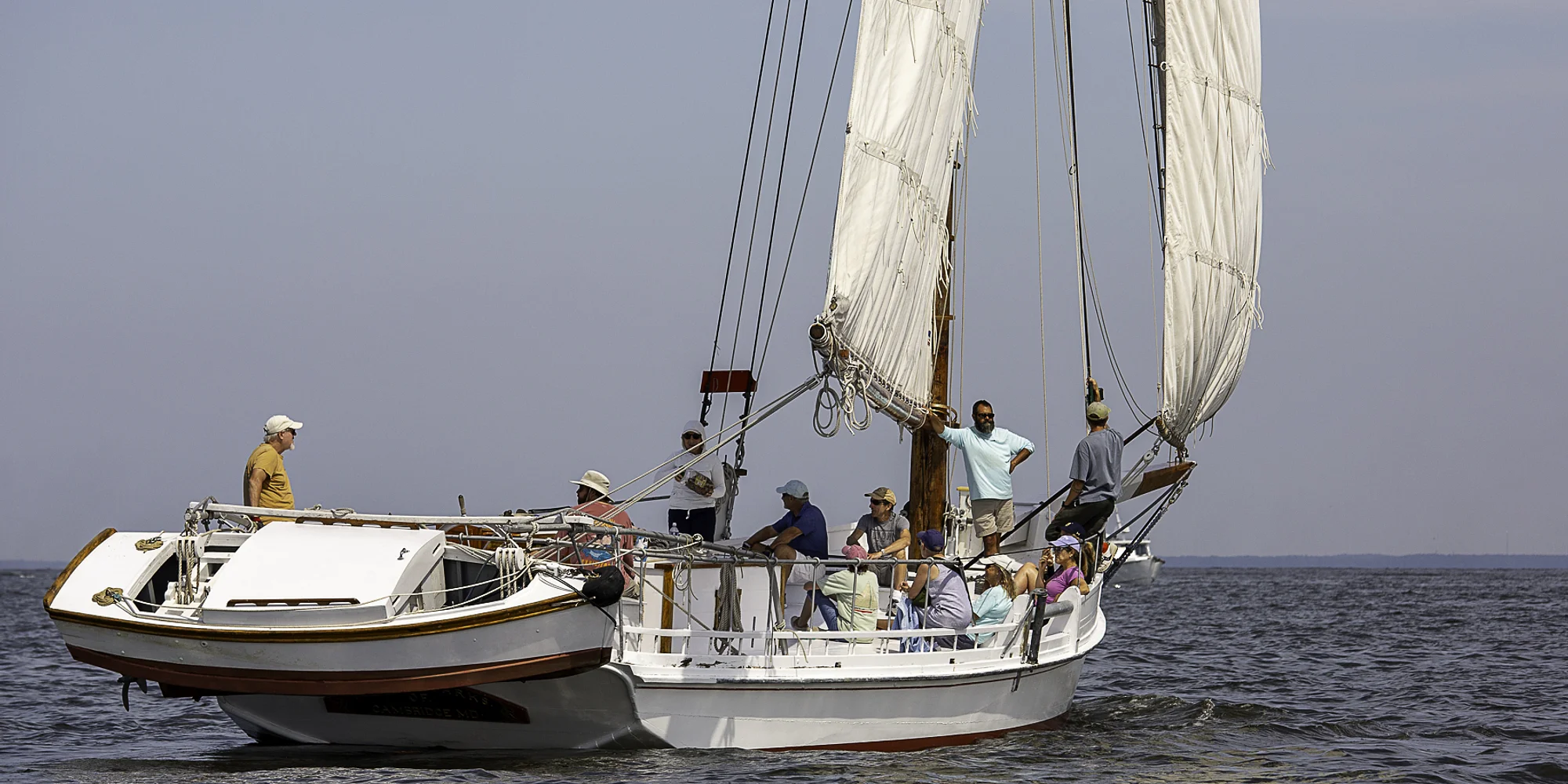 Skipjack Sail Training: Solomons Island Thursday, April 30 & Monday, May 4 (Feb. 10 update: The April 30 and May 4 Skipjack Sail Trainings are now full. Please use the links below to join the waitlist. Click here to explore more Shipyard programming.) Welcome aboard the historic skipjack Rosie Parks for the sails to and from the Solomons Maritime Festival, alongside CBMM’s Shipyard staff and volunteers. Along the way, you’ll learn helmsmanship, sail handling, rules of the road, basic navigation using physical and digital charts, sail evolutions and theory, engine operations, vessel anatomy and terminology, skipjack historical developments, and history of the vessel and its builder. The sail to Solomons Island includes van transport back from the Calvert Marine Museum, while the return trip includes a van trip to Solomons Island to begin the day. The vessel is capped at six students per sail. For the Solomons Maritime Festival sails, you pick between two travel legs with specific sailing dates/times and rain dates. Please note that in signing up you agree to the date and rain date. Refunds will only be provided should we cancel the event or plan our departure outside of our rain date. Physical demands: Participants must be able to endure weather exposure for the entire duration. The vessel has a below decks aft cabin where rest can be had and shelter can be taken from wind and rain, however participants are required to assist and participate in sailing for the entirety of the transit. Food: Snacks, assorted sodas, water, and coffee will be provided. Participants are encouraged to bring their own lunch and breakfast. Clothing: Bring layers, rain gear, and a full change of clothes. Communications: A week before the trip, the captain will email the entire crew with a weather update, further transit details, and additional information Skipjack Sail Training: Solomons Island St. Michaels to Solomons Island: Thursday, April 30 – 6:30am-3pm followed by an approximately 2-hour and 15-minute van transit from Calvert Marine Museum to CBMM (Rain date: April 29) Solomons Island to St. Michaels: Monday, May 4 – 7:30am-4pm – Transport van leaves CBMM at 6am for trip to Calvert Marine Museum (Rain date: May 5) Cost: $150, with a 20% discount for CBMM members CBMM MEMBERS CLICK HERE TO JOIN THE WAITLIST FOR ST. MICHAELS TO SOLOMONS ISLAND NON-MEMBERS CLICK HERE TO JOIN THE WAITLIST FOR ST. MICHAELS TO SOLOMONS ISLAND CBMM MEMBERS CLICK HERE TO JOIN THE WAITLIST FOR SOLOMONS ISLAND TO ST. MICHAELS NON-MEMBERS CLICK HERE TO JOIN THE WAITLIST FOR SOLOMONS ISLAND TO ST. MICHAELS