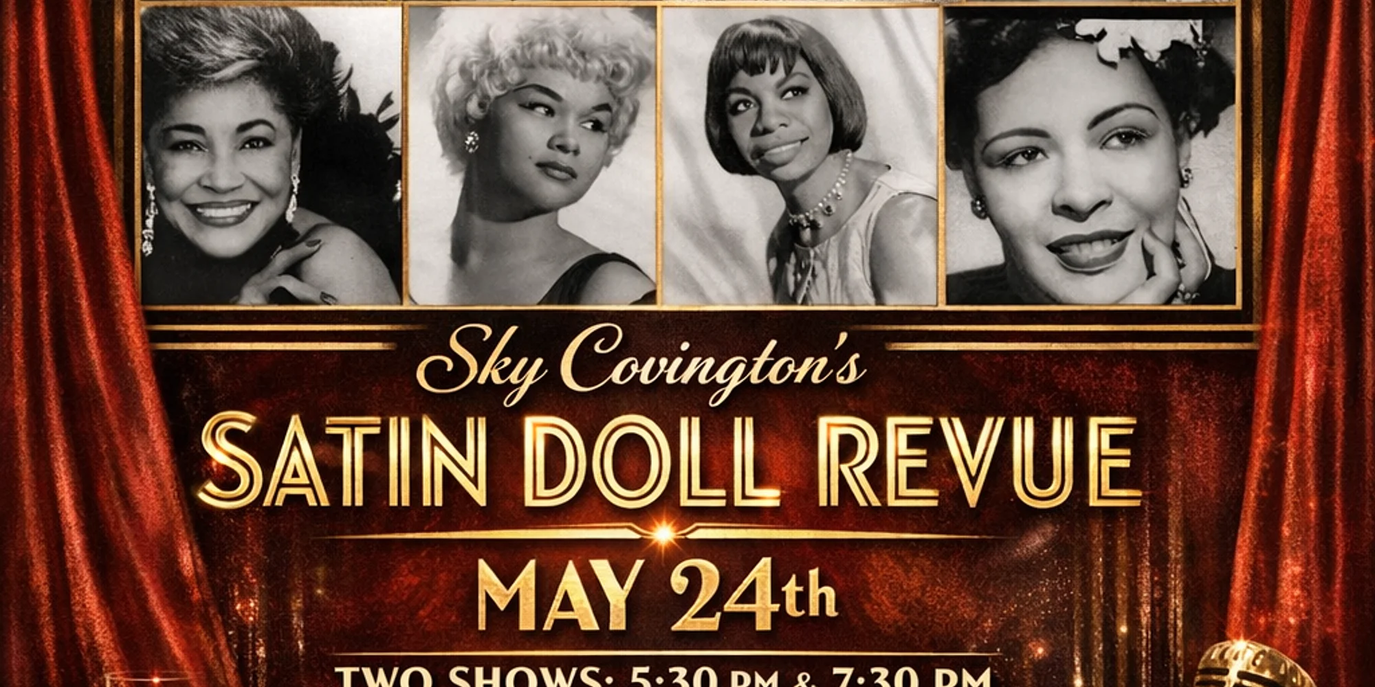 SHOWTIMES ARE AT 5:30PM & 7:30PM FOR THIS PERFORMANCE. Doors open at 4pm for dinner. Seating begins at 5pm for “Dinner & a Show”. The second show starts seating at 7pm. Sky Covington’s Satin Doll Revue Created and produced by award-winning jazz vocalist and cultural curator Sky Covington, The Satin Doll Revue is a celebrated concert experience honoring the legendary women whose voices shaped the emotional and musical landscape of jazz. Presented through Covington’s organization, The Preservation of Jazz, the revue blends elegant stage presentation, masterful musicianship, and heartfelt storytelling to illuminate the artistry and influence of iconic performers such as Billie Holiday, Nina Simone, Etta James, and Nancy Wilson. More than a tribute, The Satin Doll Revue is a living expression of jazz heritage — thoughtfully curated to celebrate not only the music, but the courage, sophistication, and individuality of the women who transformed American song. At the heart of the production is Covington herself, whose deeply expressive portrayals — particularly of Billie Holiday — bring emotional authenticity and interpretive depth to every performance. Surrounding her is a dynamic ensemble of vocalists and musicians who share a commitment to honoring tradition while engaging modern audiences. Under Covington’s visionary leadership, The Satin Doll Revue has grown into one of Detroit’s notable live music presentations, drawing devoted listeners while introducing new audiences to the timeless power of jazz. Elegant, immersive, and musically rich, the production reflects Covington’s enduring mission: to preserve the legacy of jazz while ensuring its spirit continues to resonate for generations to come. https://www.facebook.com/thesatindollrevue https://www.instagram.com/skycovingtonsatindollrevue