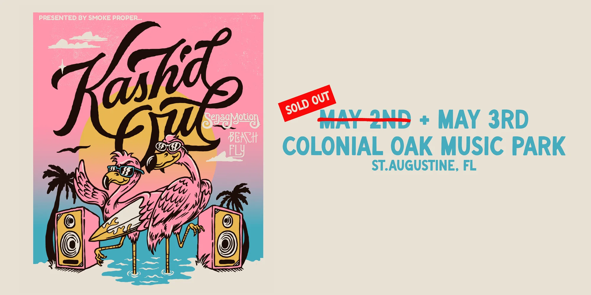 KASH’D OUT w/ SENSAMOTION & BEACH FLY live in ST AUGUSTINE. Full show details and tickets at Eventbrite links below! CLICK HERE FOR NIGHT ONE TICKETS – MAY 2 Sold out CLICK HERE FOR NIGHT TWO TICKETS – MAY 3