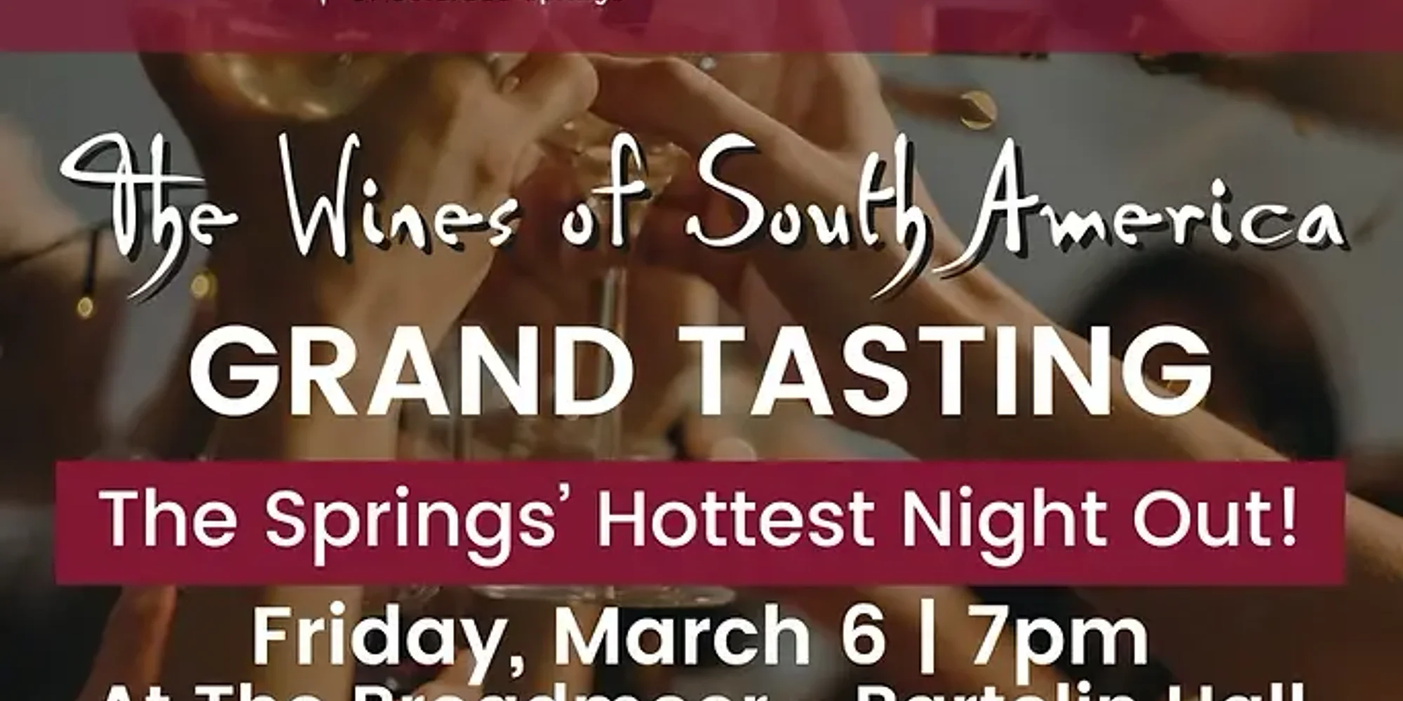 At The Broadmoor – Bartolin Hall | $125 per person The Grand Tasting is the most popular event of the Wine Festival of Colorado Springs — and the city’s favorite date night. This sell-out soirée invites guests to mingle with vintners and distributors, taste more than 300 wines, and sample culinary creations from many of the region’s finest restaurants and caterers. Sip, savor, and explore all evening as you enjoy live music and dance the night away. Attire Recommendation: Cocktail Buy Tickets