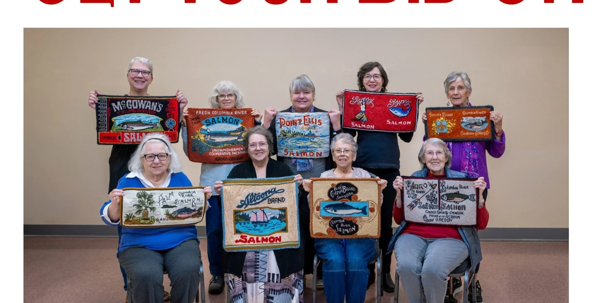 Join us for refreshments and final bidding on the Salmon Label Rug Auction with demonstrations by The Ocean Park Rug Club. Free Admission. Saturday, April 18, 2-4 pm