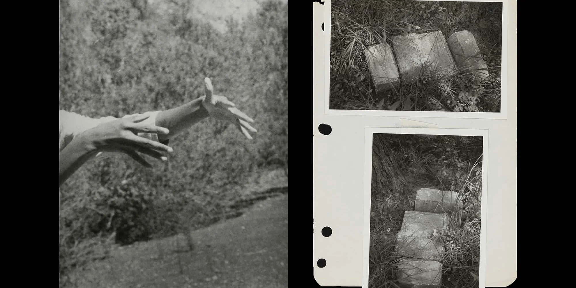 (L to R): Dionne Lee, Castings (detail), 2022. Gelatin silver prints, 5 x 7 inches. Courtesy the artist and Petra Bibeau, New York; Beverly Buchanan, photographs of cast concrete works left by the artist on the grounds of JOB AME Church, Juliette, GA, August 27, 1982. Box 3, Beverly Buchanan papers, Archives of American Art, Smithsonian Institution, Washington, D.C. Add to calendar Google Calendar iCalendar Outlook 365 Outlook Live About Divination: Beverly Buchanan & Dionne Lee foregrounds Beverly Buchanan and Dionne Lee’s explorations of the myths, majesty, and dispossessions embedded in the American landscape. The exhibition is the second in a series organized by Senior Curator Rebecca Matalon to bring together artists across generations as a way to open up new interpretations of their work. The show follows the 2021 exhibition Wild Life: Elizabeth Murray & Jessi Reaves, which similarly presented an exchange between intergenerational artists. Divination pairs materials from the late Buchanan’s archives, including photographs, journals, writing, and ephemera, with a selection of videos, photographs, and sculptures by the Columbus-based Lee. While Buchanan (1940-2015) and Lee (b. 1988, New York City) are from different generations, both artists explore relationships between Blackness and land, mining racialized histories of the American landscape and its dualities as a site of sanctuary and displacement, sustenance and deprivation. The two artists share an interest in survivalist practices, and each thinks of land as not only a physical place or substance to be encountered, but an accumulation of ever-shifting material and psychic entanglements. Over the last decade, new scholarship has brought renewed and much deserved critical attention to Buchanan’s profound but underrecognized contributions to the history of land art and environmental sculpture, works that range from cast concrete slabs (“frustulas”) to her later small-scale “shack sculptures” that memorialize the architectural styles of Southern homes and their owners. This exhibition aims to delve into lesser-known aspects of the artist’s practice, for example her placing of small cast concrete works in graveyards of enslaved peoples across rural Georgia; her “auto-archival” use of photography to document these covert actions, major public works, and herself; and self-published calendars, sketchbooks, and ephemera traditionally considered minor or marginal. Divination places Buchanan’s work in dialogue with Lee’s photographic and filmic examinations of what it means to tend to, seek out, and honor the land on which we live, including its hidden and darker histories. The exhibition positions their practices as forms of divination-making visible what all too often remains unseen. Organizers Divination: Beverly Buchanan & Dionne Lee is organized by Contemporary Arts Museum Houston, and curated by Rebecca Matalon, Senior Curator. Support Support for Divination: Beverly...