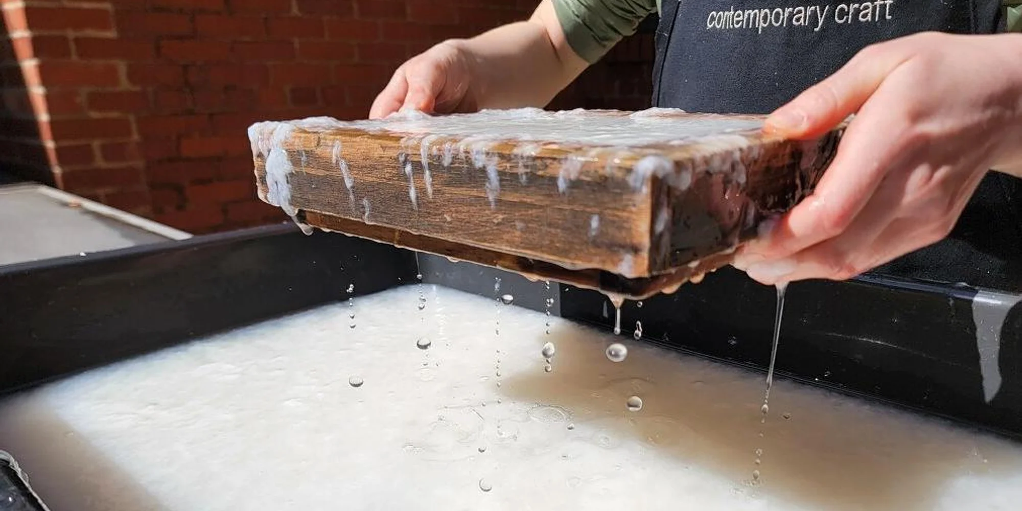 Starting from pulp! Learn the basics of papermaking, then bind one of a kind notebooks with your handmade paper. Introduction to Papermaking Series: Pulp to Pages with Mia Brown-Seguin 6-Part Series Date: Thursdays, April 9 – May 28 (no class meetings on April 16 or May 14) Time: 6pm-9pm Description: Starting from pulp! Learn the basics of papermaking, then bind one of a kind notebooks with your handmade paper. In this six part series, participants will learn western sheet forming methods, pulp painting techniques, and how to operate a hollander beater to produce pulp. After production sheet forming, participants will make three hand bound books including a saddle stitch, japanese stab bind, and coptic bind. Tuition: $270 + $50 materials fee (if you are viewing this listing on a phone, you might need to scroll to the bottom of the page for the link that will take you to register through eventbrite) Materials: All materials will be provided. Note: We really want you to join us in the studio! Full and partial tuition scholarships are available to offset some of the financial burden of attending a class. Please fill out the application here! You can expect to hear from someone on the CC staff within 2 weeks. If you have any questions, email Jamie Boyle, Fibers Program Manager, at jboyle@contemporarycraft.org, or leave a voice message for them at 412-465-1628. Location: Contemporary Craft, Timmons Studios (5688 Butler St., Pittsburgh, PA 15201). Note, this workshop will take place in the Papers Studio, which is on the first floor of the building. There are 2 entrances to the Timmons Studios. • One entrance is facing Butler Street. To access the Paper Studio from the Butler Street facing entrance, there are a total of 8 stairs to ascend. . From there, you can enter the Paper Studio directly • One entrance is facing 57th Street. This entrance is accessible by ramp, with no stairs to ascend. Please ring the doorbell to the left of the frosted glass door, and staff will let you in. From there, the paper studio is down the hallway. If there are accessibility accommodations we can provide, or if there is anything you would like us to know before you arrive, please leave a message for Jamie Boyle at 412-465-1628 or by email jboyle@contemporarycraft.org. Cancellations and Refunds: Workshop cancellations are decided three business days before the start date. If workshops must be cancelled due to insufficient enrollment, the entire class fee will be refunded through Eventbrite, or you may leave your workshop fee in your Contemporary Craft account for future workshops. Refund Policy: Student refund requests must be made at least three business days before a class begins. There will be a $25 cancellation fee. No refunds will be given without three-business days notice. Processing of refunds takes approximately three weeks. About the Artist Mia Brown-Seguin is a papermaker, sculptor, and educator born in Massachusetts. She has been awarded r...