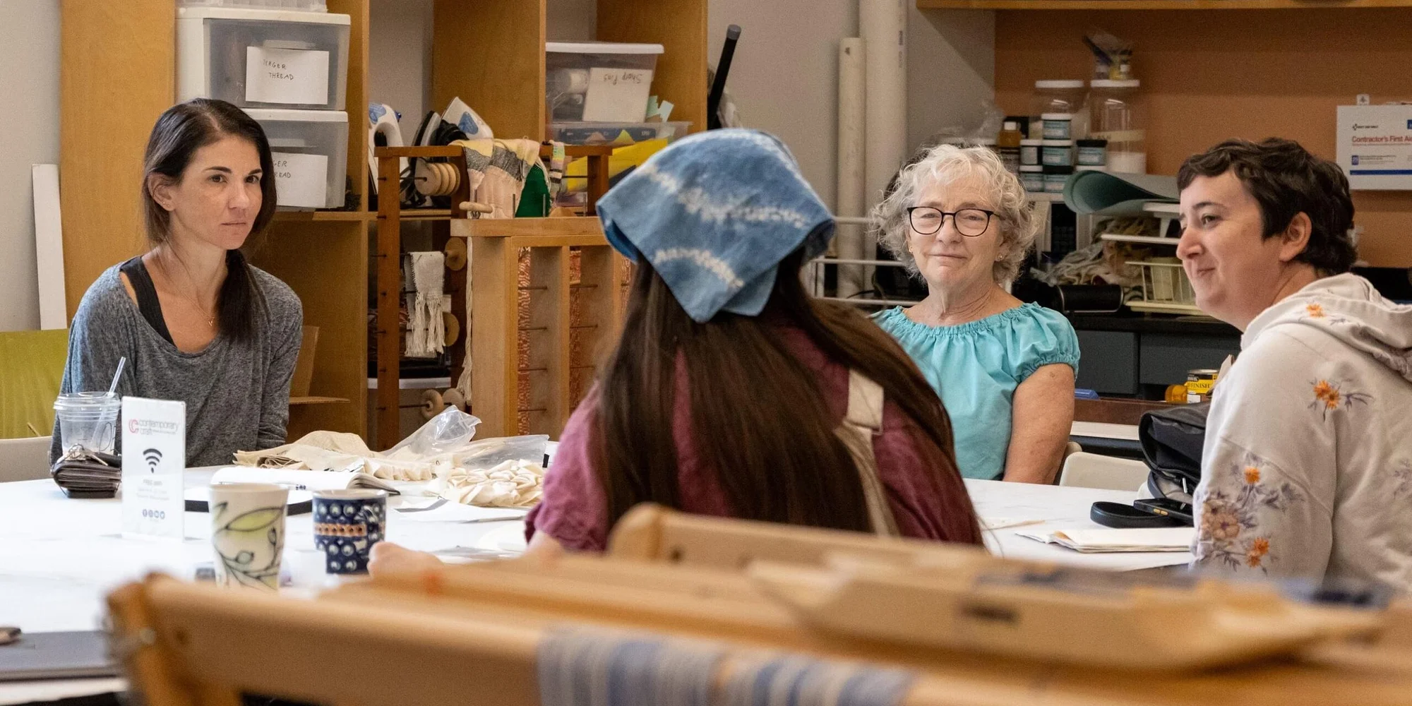 Photo: Reagan West-Whitman Office Hours with Christina Kingerski Conversation Group Date: Friday, June 26, 2026 Time: 12:30PM-2:30PM Description: Join fiber artist Christina Kingerski for Office Hours, a budding creative community that brings together makers and art lovers working in diverse mediums who are looking to spark their own, and each other’s, curiosities. You are encouraged to bring a project to work on, or something to share with the group that has captured your interest as of late. Expect lively conversations in a relaxed and heartfelt space. Cost: FREE! Note: Though there is no cost to register and attend Office Hours, registration is required. Knowing how many people to expect in attendance is necessary for us to identify a location that will work for the group within the studios! Donations to Contemporary Craft are deeply appreciated and help us to support programs like these! There is an opportunity to offer a donation on the registration page. Location: Contemporary Craft, TImmons Studios (5688 Butler St., Pittsburgh, PA 15201). Exact studio within the Contemporary Craft Campus will be determined two days prior to the event. You will be notified by email with details. If there are accessibility accommodations we can provide, or if there is anything you would like us to know before you arrive, please leave a message for Jamie Boyle at 412-465-1628 or by email jboyle@contemporarycraft.org.
