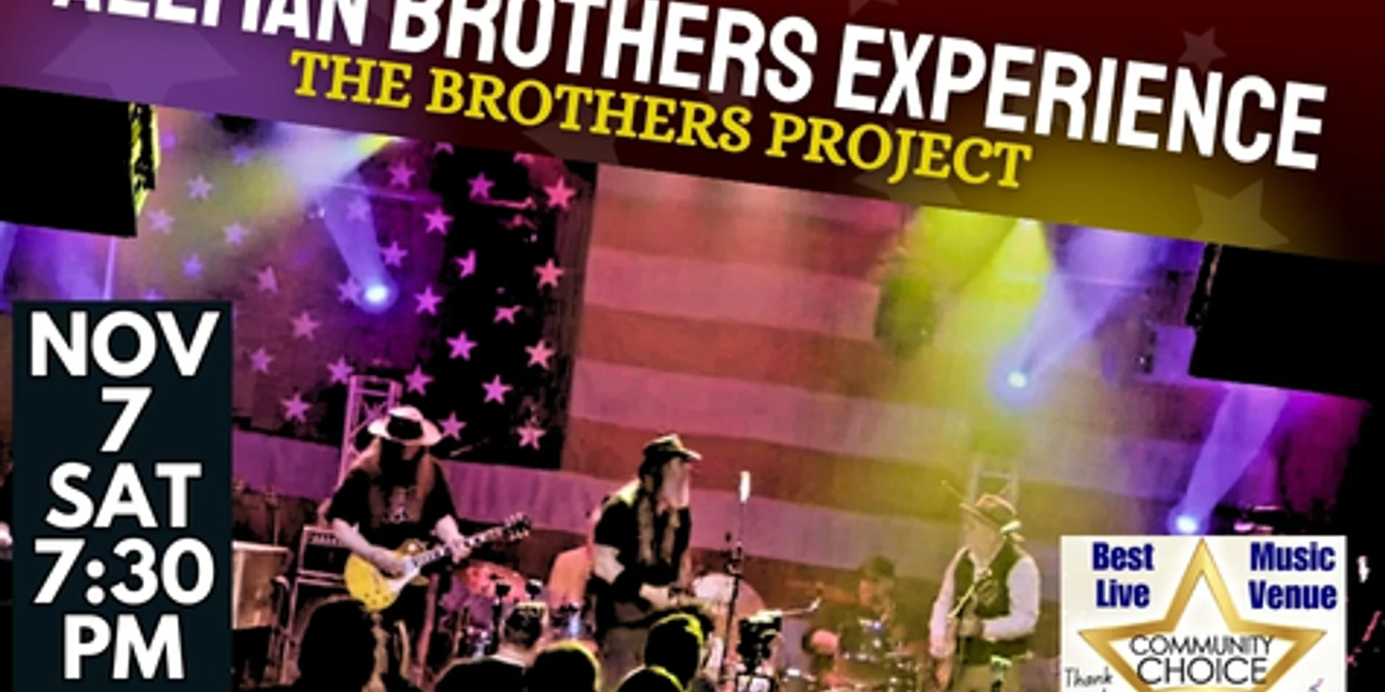 Get away from your Whipping Post and be a true Ramblin’ Man! Grab Melissa, Jessica, your Black Hearted Woman, and head out Southbound for a night that captures the spirit, energy, and timeless sound of Southern rock at its finest. We Ain’t Wasting Time No More, and neither should you. This is your chance to relive the magic, the soul, and the unmistakable vibe of the Allman Brothers as only The Brothers Project can deliver! So don’t be Old Before Your Time. Let your Soulshine as the guitars roar, the drums thunder, and the music lifts you higher than ever. This amazing concert promises an evening full of passion, nostalgia, and pure musical power. Get your tickets now before they sell out again, because a night like this doesn’t come around twice! Buy Tickets All ages. No outside food & drink. Full bar and plentiful free parking onsite. Come see why the Courthouse has won #1 Live Music Venue three years running!
