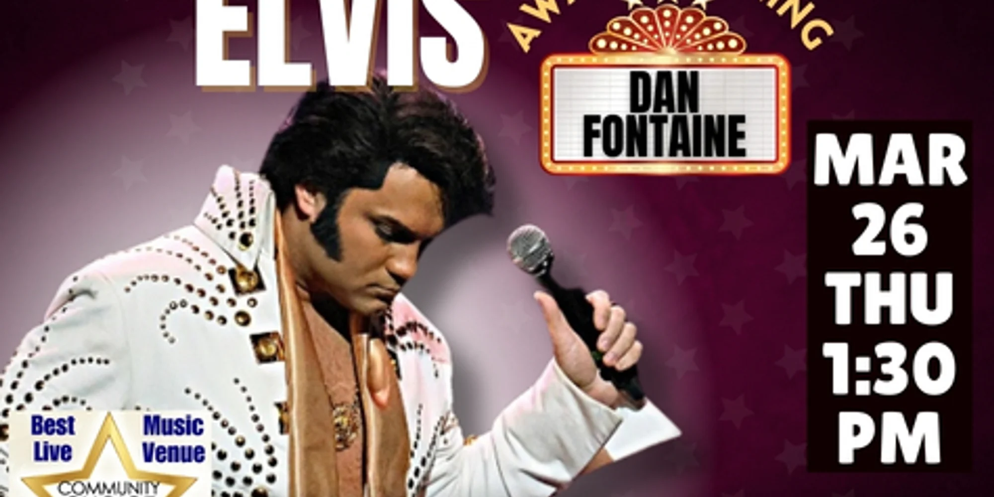 Dan Fontaine’s award-winning Elvis tribute will Jailhouse Rock your world and prove you simply Can’t Help Falling in Love with every electrifying moment. With a stage presence that banishes any Suspicious Minds, ignites a Burning Love, and makes you feel All Shook Up on your way to Heartbreak Hotel or a night of Viva Las Vegas thrills, Dan delivers a show that spans Elvis’s career — from his early hits with Sun Records to his legendary Vegas performances. Hailing from Massachusetts and inspired by Elvis at 16, Dan has honed his craft across New England and beyond, achieving top honors in national and international competitions, including a 2024 Georgia Tribute Festival win and the 2021 Grand Champion title at Reflections of the King. Reserve your tickets now and experience Elvis’s timeless magic like never before! Buy Tickets All ages. No outside food & drink. Full bar and plentiful free parking onsite. Come see why the Courthouse has won #1 Live Music Venue three years running across 2023, 2024, and 2025!