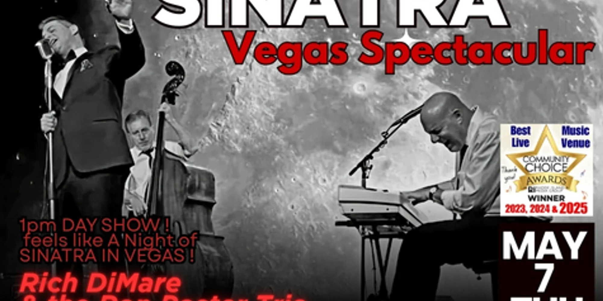 “A Sinatra Spectacular” is coming to The Courthouse with all your favorites, like Frank’s iconic beloved songs “My Way” & “New York, New York”, performed by Rich DiMare and The Ron Poster Trio. Rich DiMare is an American singer who specializes in the Frank Sinatra songbook and has 20 years experience providing entertainment across the country. Rich spent 15 years live on-air at Boston’s highest rated morning show, KISS 108’s Matty in the Morning, and as a host on Boston’s Fox25 TV. Because of this experience in media and music, Rich is a seasoned showman. Ron Poster is a Boston based pianist and keyboard artist who specializes in Popular & Classic American music as a soloist and with small groups. He’s been the organist for the Boston Bruins at TD Garden since 2001 and also toured in the 90’s and early 2000’s with the band Missing Persons. Rich and Ron’s understanding of the Sinatra songbook, coupled with their interactions on stage makes this “Ol’ Blue Eyes” experience something Rat Pack lovers will never forget! Buy Tickets All ages. No outside food & drink. Full bar & plentiful free parking onsite. Come see why the Courthouse has won #1 Live Music Venue three years running across 2023, 2024, and 2025!