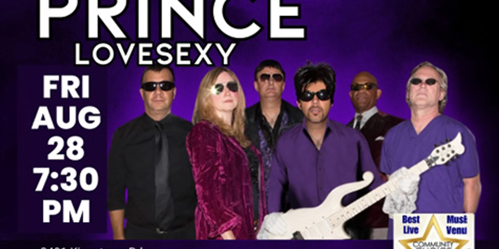 We’ve got the look and feel like it’s 1999 with this cream of the crop Prince tribute. It’s all Diamonds and Pearls, so Let’s go Crazy with LoVeSeXy – don’t be Delirious, grab your tickets now, because they will sell out. You’ll be Spellbound by the ultimate tribute to the Purple One himself. LoVeSeXy has been mesmerizing audiences far and wide by capturing the essence of Prince- offering a Kiss of musical genius that is catchy as a Raspberry Beret. Driven by sultry grooves and charged with electrifying guitar riffs, each show is a Purple Rain of hits that captivates the audience with their Little Red Corvette of sound. Tickets are going fast, so experience the Sign o’ the Times and join in on a night to remember! Buy Tickets No outside food & drink. Full bar and plentiful free parking onsite. Come see why the Courthouse has won #1 Live Music Venue three years running across 2023, 2024, and 2025!