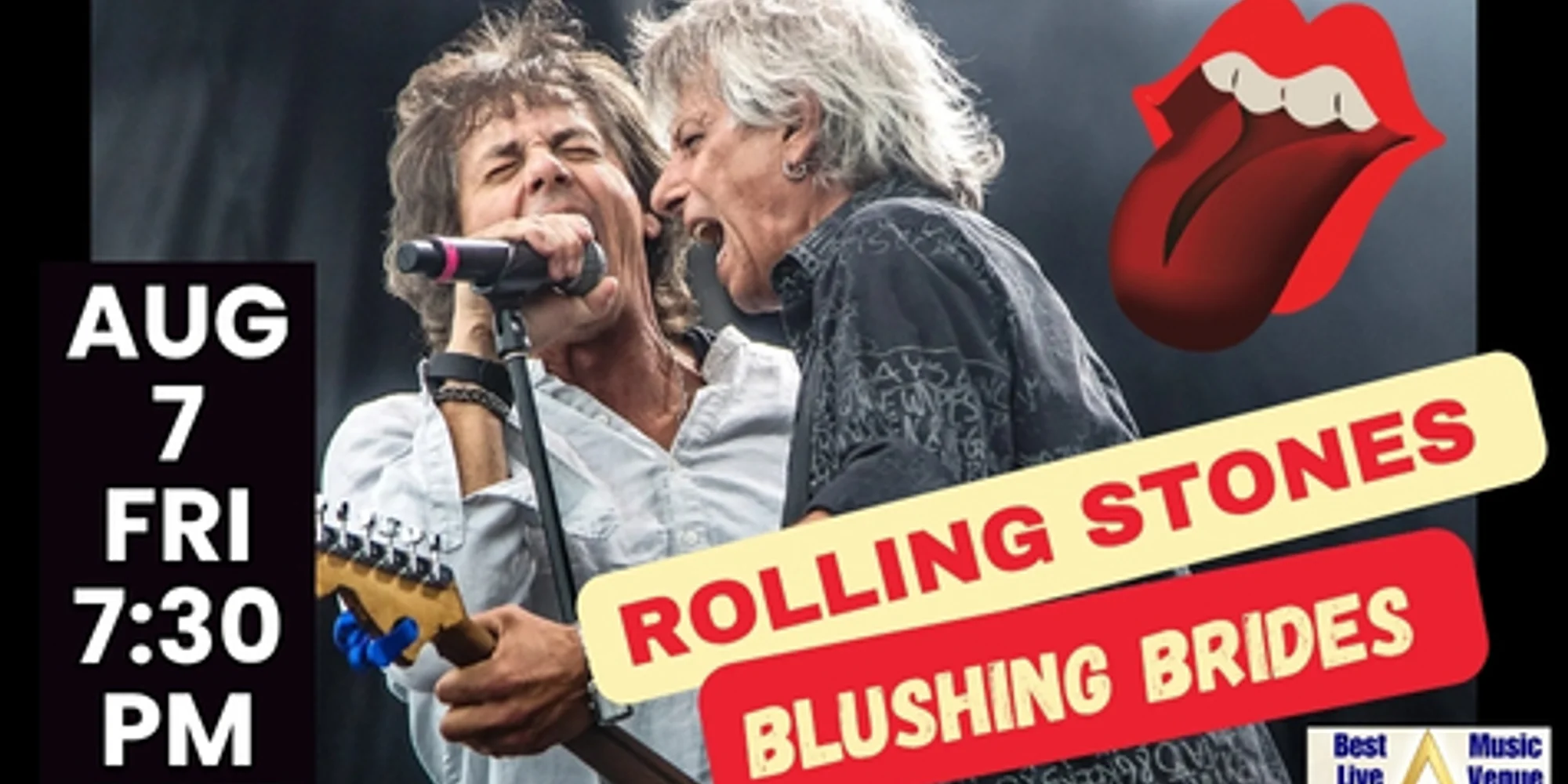 Stop Waiting on a Friend—get some Satisfaction and Let’s Spend the Night Together with The BLUSHING BRIDES! Formed in ’79 with front man Maurice Raymond channeling Sympathy for the Devil and unmatched showmanship, they bring the raw energy and swagger only the Rolling Stones could. Every performance is a Jumpin’ Jack Flash of passion and spontaneity, where no two shows are the same. From Gimme Shelter to Paint It Black, they’ll have you shouting Start Me Up before the first encore. Celebrating over 4,000 performances, The Blushing Brides hold the title of the world’s longest-running and most successful Rolling Stones tribute band. With Raymond (as Mick Jagger) and guitarist James Green still carrying the flame from the band’s 1979 Montreal beginnings, this show ALWAYS sells out—Time Is on Your Side only if you act fast. Get your tickets now! Buy Tickets All ages. No outside food & drink. Full bar and plentiful free parking onsite. Come see why the Courthouse has won #1 Live Music Venue three years running across 2023, 2024, and 2025!