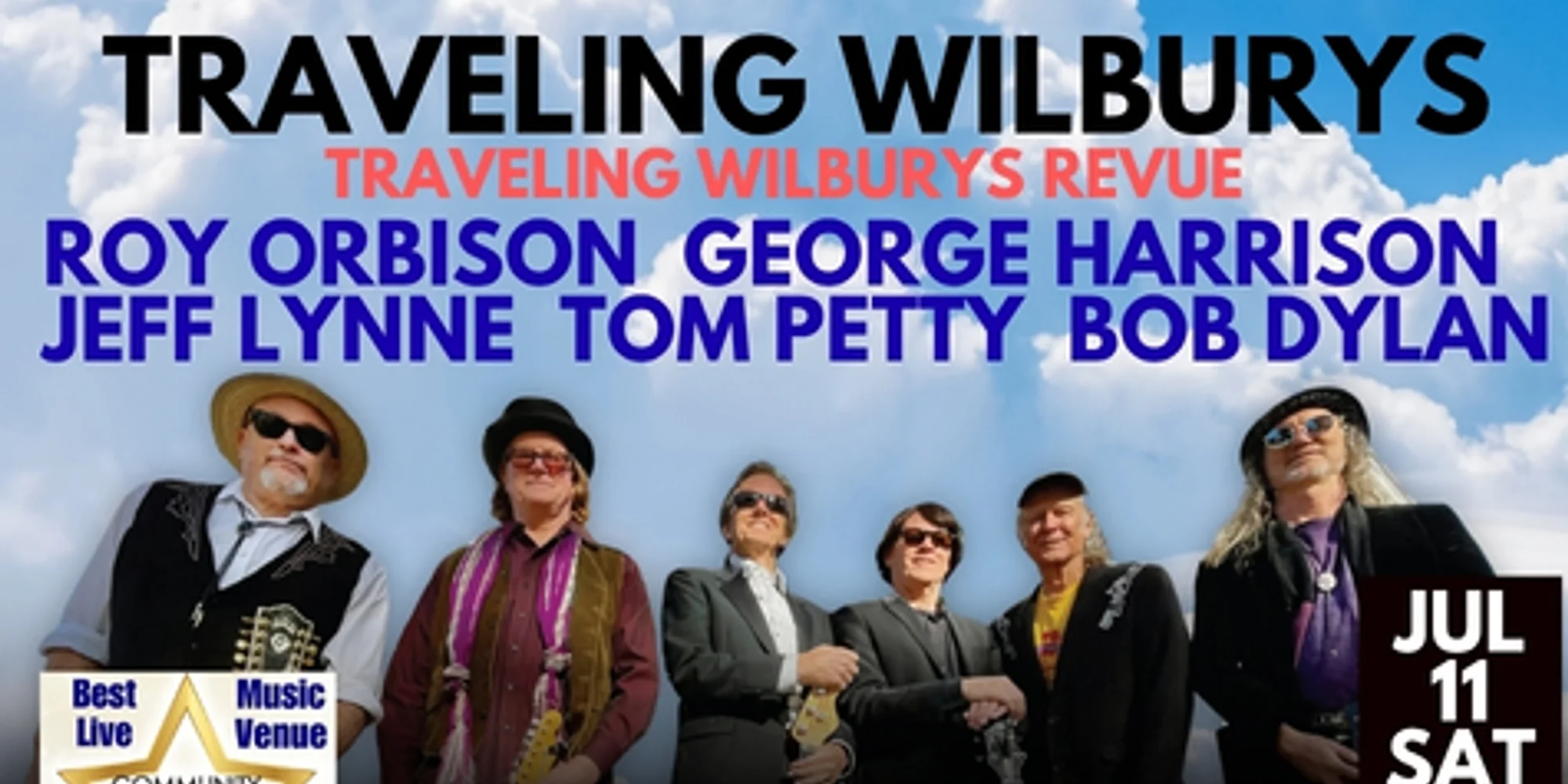GEORGE HARRISON, TOM PETTY, ROY ORBISON, BOB DYLAN, JEFF LYNNE… THE TRAVELING WILBURYS The super-group that never performed live the music they created out of that brief moment at the invitation of George Harrison to ‘get together and write some songs’. Hits like Handle With Care, End Of The Line, Last Night…… This amazingly talented set of musicians recreates the original SUPER-GROUP to a T… Part of our Spot on Concert Series… Come see why .. and why we are voted the BEST Live Music Venue for 3 years running… THE TRAVELING WILBURYS REVUE brings that music of the WILBURYS and the hits from each of these individual artists to every show. Here Comes The Sun, Won’t Back Down, Pretty Woman, Like A Rolling Stone, Don’t Bring Me Down, and more that everyone knows and loves. Now fans can finally see and hear these great songs at every performance of THE TRAVELING WILBURYS REVUE . Don’t miss this show. It will sell out quickly. Buy Tickets All Ages. No outside food & drink. Full bar and plentiful free parking onsite. Come see why the Courthouse has won #1 Live Music Venue three years running!