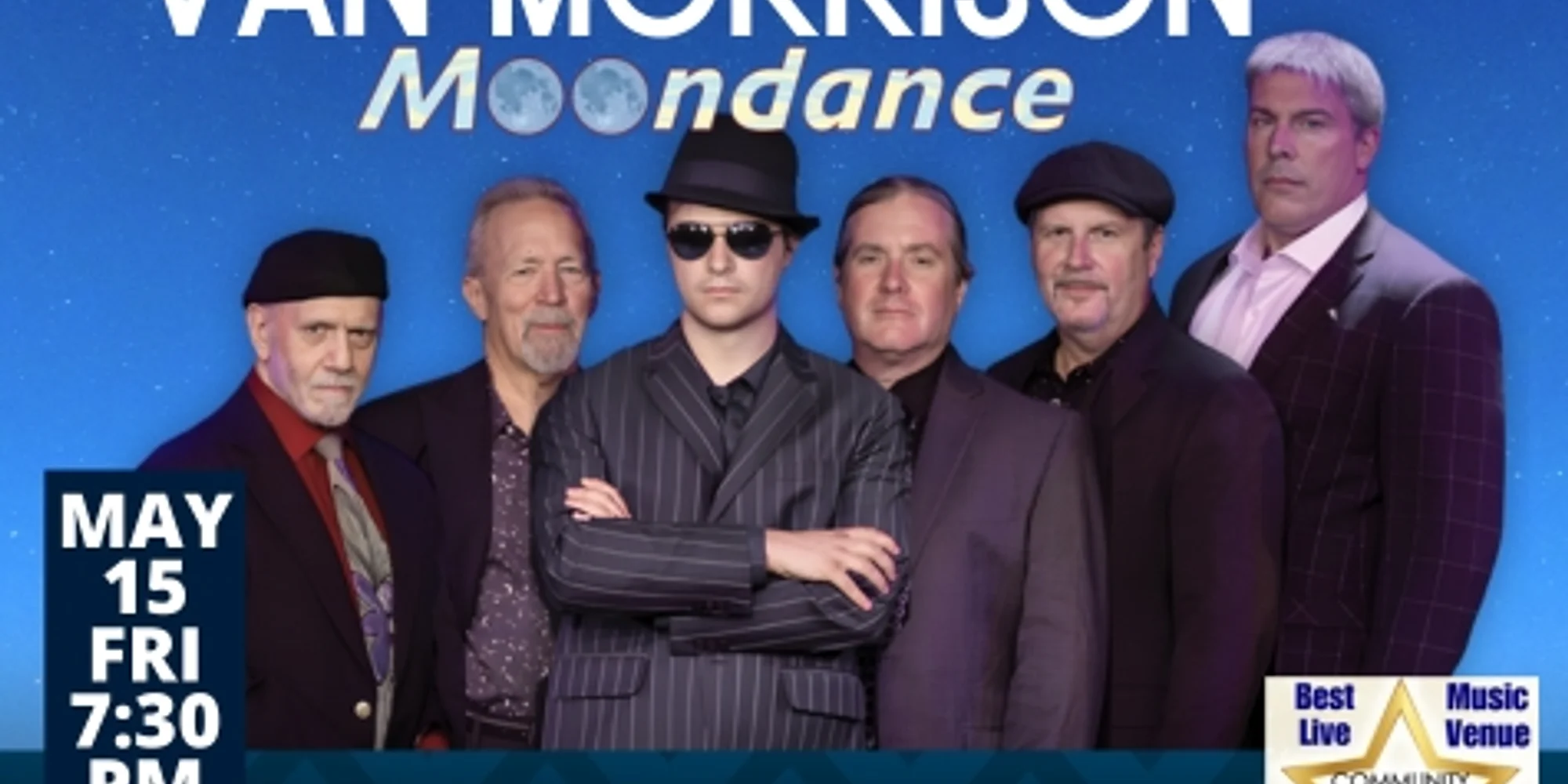 Imagine a magical evening at the Courthouse Center for the Arts, where Van Morrison’s timeless classics echo through the halls, filling the air with soul and nostalgia. The night opens with Brown Eyed Girl, the crowd instantly swaying to its joyful rhythm. As the lights dim, Into the Mystic takes over, transporting everyone to a dreamlike state with its haunting melody and poetic lyrics. The band delivers an electrifying performance of Moondance, setting a jazzy, romantic mood that sweeps across the room. Later, as Domino energizes the night, fans are on their feet, dancing and singing along to the upbeat tempo. The evening crescendos with And It Stoned Me, creating a moment of pure connection between the audience and the music, leaving everyone feeling like they’ve witnessed something truly special. A concert for the ages at the Courthouse Center for the Arts, filled with Van Morrison’s greatest hits, will be remembered as a night of pure magic. Grab your tickets quickly, as this show always sells out! Buy Tickets All ages. No outside food & drink. Full bar and plentiful free parking onsite. Come see why the Courthouse has won #1 Live Music Venue three years running across 2023, 2024, and 2025!