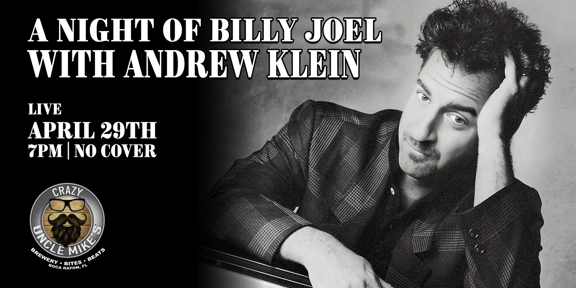 Come spend an evening with Andrew Klein as he serenades you with a tickle of the keys and the best of the east coast hits! Make sure to check out our food and drink menus! GET YOUR TICKETS NOW! April 29th : An Evening with Andrew Klein Can’t make it, don’t worry all of Crazy Uncle Mike’s shows are streamed straight to your living room on our Youtube & Facebook! https://www.eventbrite.com/e/an-evening-of-billy-joel-with-andrew-klein-tickets-1985194351746?aff=oddtdtcreator