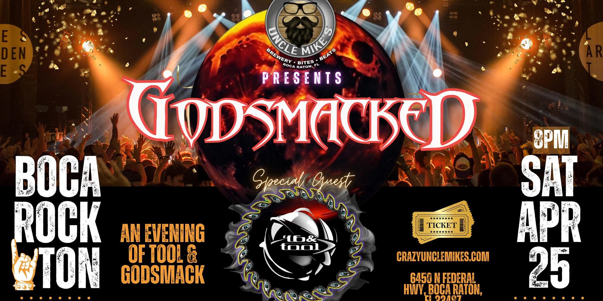 GODSMACKED takes over Crazy Uncle Mike’s for a full-force night of raw, heavy, no-compromise rock — delivering the intensity, groove, and primal energy of Godsmack, with a special guest set honoring the dark, hypnotic power of Tool. This isn’t just a tribute show — it’s a full-body live music experience. Thunderous drums, crushing riffs, and a locked-in crowd from the first note to the last. Crazy Uncle Mike’s provides the perfect room for this kind of night with killer sound, great food, and a rock-ready atmosphere. GET YOUR TICKETS NOW! April 25th: GODSMACKED – An Evening of Godsmack & Tool Can’t make it, don’t worry all of Crazy Uncle Mike’s shows are streamed straight to your living room on our Youtube & Facebook! https://www.eventbrite.com/e/godsmacked-an-evening-of-godsmack-tool-tickets-1982924779394?aff=oddtdtcreator