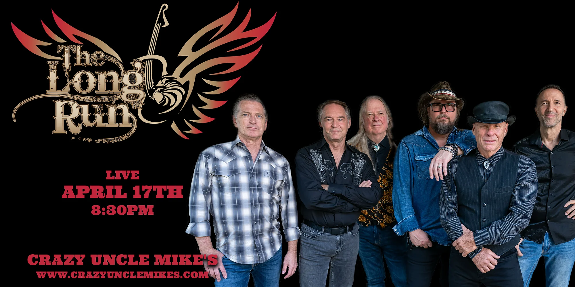 THE LONG RUN is made up of some of Florida’s finest and most respected musicians. Individual members of the band have performed with or shared the stage with great artists like Lynyrd Skynyrd, Steppenwolf, Eddie Money, Beach Boys, .38 Special, Doobie Brothers, Trace Adkins…just to name a few. THE LONG RUN reproduces the sound that made the Eagles one of the most successful musical groups in rock and roll history. They capture the energy, guitar technique and vocal harmonies of the Eagles to an art; five voices blending together that will please even the most critical of Eagles fans. You won’t hear a tribute to the Eagles this great till “Hell Freezes Over.” GET YOUR TICKETS NOW! April 17th: The Long Run Can’t make it, don’t worry all of Crazy Uncle Mike’s shows are streamed straight to your living room on our Youtube & Facebook! https://www.eventbrite.com/e/the-long-run-tickets-1985066302748?aff=oddtdtcreator