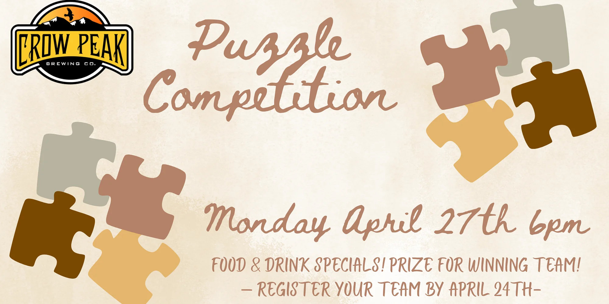 Looking for a laid-back night with a little friendly competition? Join us for Puzzle Night and put your teamwork skills to the test! Monday, April 27th 6:00 PM Teams of 2–4 people Each team will have up to one hour to work through their puzzle — plenty of time to settle in, collaborate, and enjoy the process. The team that finishes first will take home a prize We’ll provide all the puzzles — you just bring your crew and a good attitude. Preregistration is required, so be sure to sign up to lock in your spot! https://docs.google.com/…/1FAIpQLSd8thgwV4I…/viewform… Plus, enjoy a pitcher + pretzel discount during the event so you can snack and sip without missing a piece Because what’s better than pretzels, pitchers and puzzles?!?! Grab your team and join us for a fun, low-key night of puzzles, drinks, and good company!
