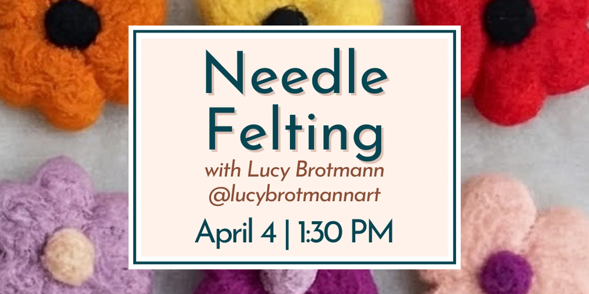 Celebrate the arrival of spring with a charming needle felting workshop led by artist Lucy Brotman. In this two-hour, beginner-friendly session, Lucy will guide participants through shaping and sculpting colorful wool fibers into delightful spring flowers. You’ll explore essential felting techniques, experiment with vibrant materials, and create a set of soft, sculptural blooms perfect for gifting or decorating your home. All materials are provided, and participants will leave with finished felted flowers and the skills to continue needle felting on their own. Purchase Tickets