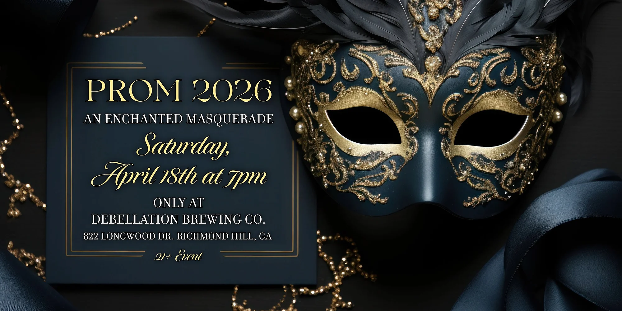 We are thrilled to be hosting our 2nd annual PROM right here in Richmond Hill! It's time for us adults to enjoy prom too, masquerade style! That being said, this is a 21+ ONLY event. Whether you didn't have a chance to go to your high school prom, or you want to relive the glorious night, this is your chance. Ticket price includes live DJ, professional photo sessions, complimentary hors d'oeuvres, and a keepsake of the enchanted evening. We are treating this event as a real prom, so formal attire is required. You all were dressed to the nines last year, so we can't wait to see how great you all look with your dresses, suits, tuxedos, and masquerade masks this year! TICKETS HERE