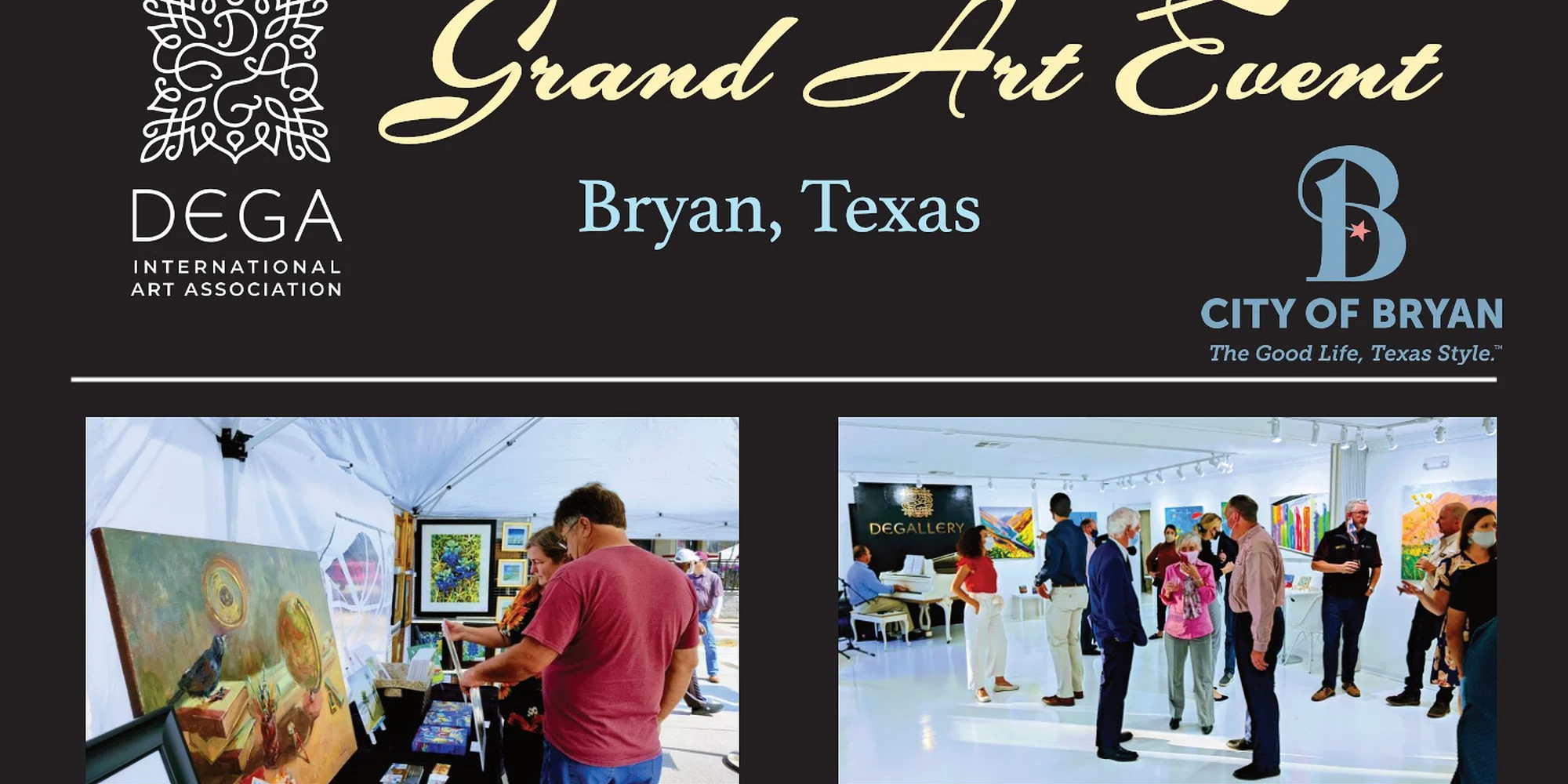 About: https://www.artdega.org/programs/degart/ Have you experienced the mesmerizing beauty of Central Texas during the Bluebonnet Bloom? If not, seize this unique opportunity to capture its essence on canvas! Immerse yourself in the extraordinary landscapes teeming with Texan charm. Join us for a series of Art Events featuring Workshops, Plein Air sessions, and captivating Art Shows—all integral parts of the prestigious DEGART Grand Event! Embark on a journey through the picturesque Bluebonnet country, where rolling hills, river bluffs, and quaint historic towns await your artistic touch. With countless scenic vistas awaiting your brushstrokes, this paintout promises an unforgettable experience amidst the larger canvas of the DEGART Grand Event, sure to captivate the local community. Mark your calendars (March 28-April 2, 2026) for this artistic extravaganza, set to unfold in the enchanting Bryan/College Station area of Central Texas, proudly hosted by DEGALLERY and DEGA International Art Association. DEGA International Art Association is a nonprofit service organization that provides resources that working artists and emerging arts organizations need to thrive. DEGA International Art Association supports international cooperation and artistic exchange, free from any aesthetic, political, or other bias, and aims to improve the economic and social position of Galleries and Artists on the national and international level (www.artdega.org) Situated in the heart of Central Texas, DEGALLERY is the premier Art studio and International Award-Winning Gallery renowned for its excellence and commitment to the arts (www.Degallery.us). We are delighted to extend our venue to host this art event dedicated to enriching the International Art Community. The DEGART GRAND Art EVENT offers a platform for artists to not only expand their reach and refine their craft but also bask in the splendor of Texas during the enchanting Bluebonnet season, surrounded by fellow creatives. Embracing artists of all levels, this event presents an opportunity to flourish, garner recognition, and partake in the vibrant artistic tapestry that is Texas. DEGART International Art Event