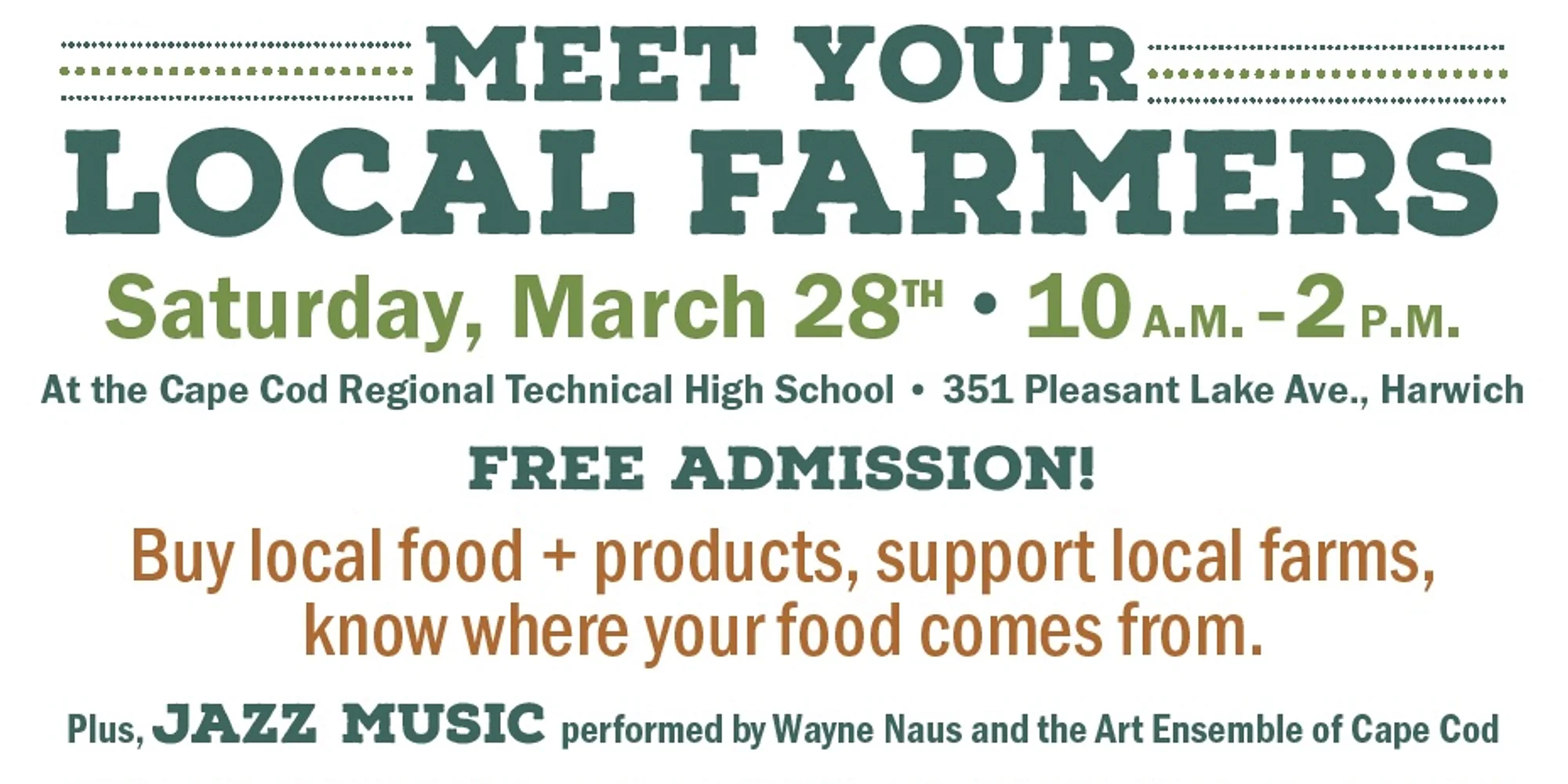 Celebrate the start of spring and support local agriculture at the “Meet Your Local Farmers” event on March 28, 2026, from 10 a.m. to 2 p.m. at the Cape Cod Regional Technical High School (351 Pleasant Lake Ave., Harwich). Our very own Not Enough Acres Farm will be there talking about upcoming farm events with a spotlight on a natural dye series called Color as Conservation. Come see natural dyeing with our farm’s plant color in action! We’ll be alongside 50 farms and farm-supporting organizations who will be on hand to answer questions and share their stories of the land. And farmers will be selling their unique products and foods, so it’s a great opportunity to bring home some Cape-grown goodness. The event, which is free and open to the public, is sponsored by Harwich Conservation Trust (HCT) and the Orleans Farmers Market. Plus, enjoy jazz tunes performed by Wayne Naus and the Art Ensemble of Cape Cod! Check out the growing list of farms, farmers & farm-supporting groups that will be featured at the “Meet Your Local Farmers” here.