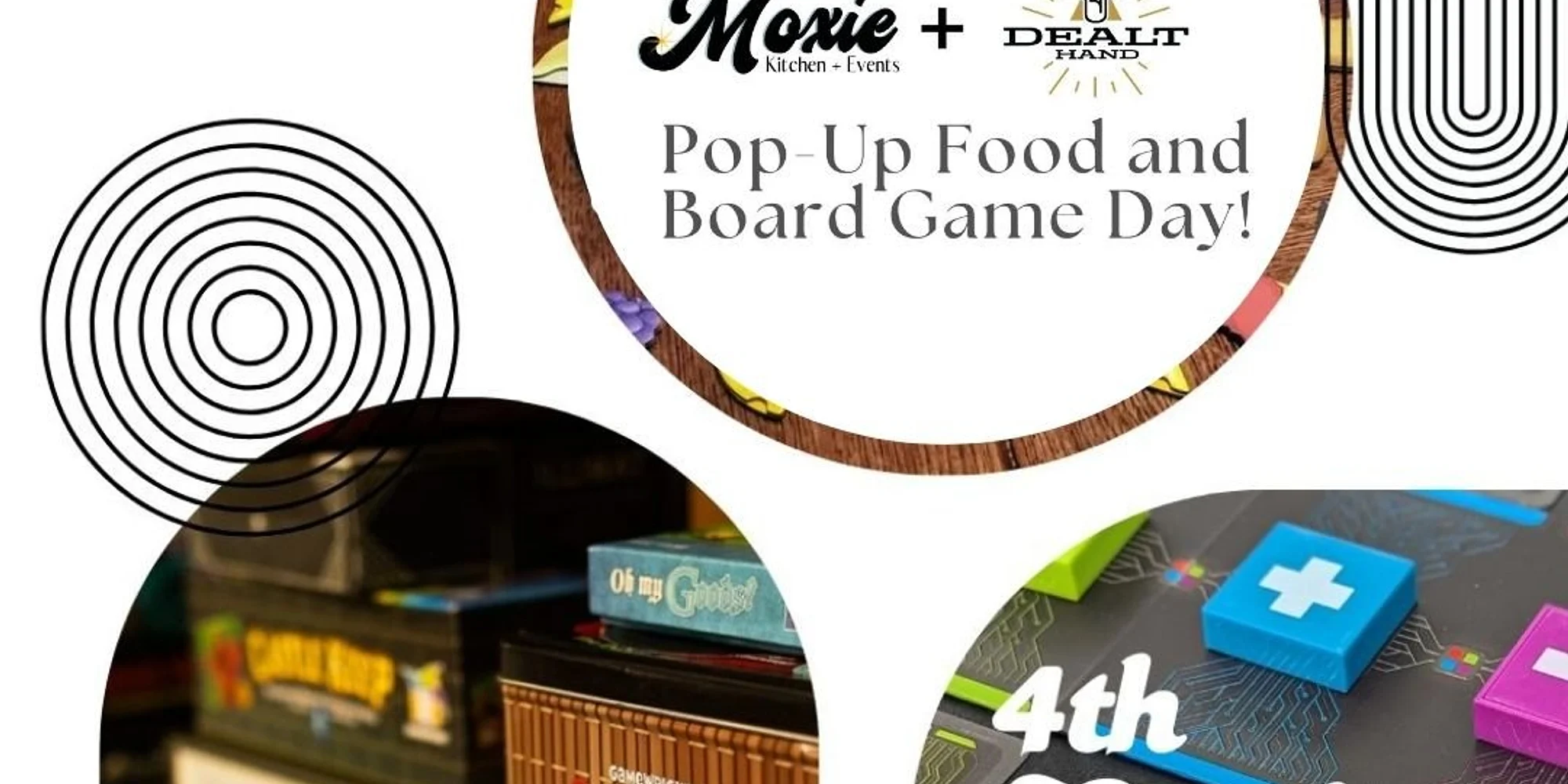 Board Game Pop-up @ Moxie Every 4th Sunday Join us at Moxie Events for a monthly, family friendly food and game day! DSM Pasta Co. will be bringing in a rotating mix of food - we'll update the event as they get locked in! And the Dealt Hand will be on-site for a free game day with a full mix of games for all ages and experiences! They'll be ready to recommend, teach and help you get started in your new favorite game! The Dealt Hand's collection of games is HUGE - so feel free to request games from their full collection