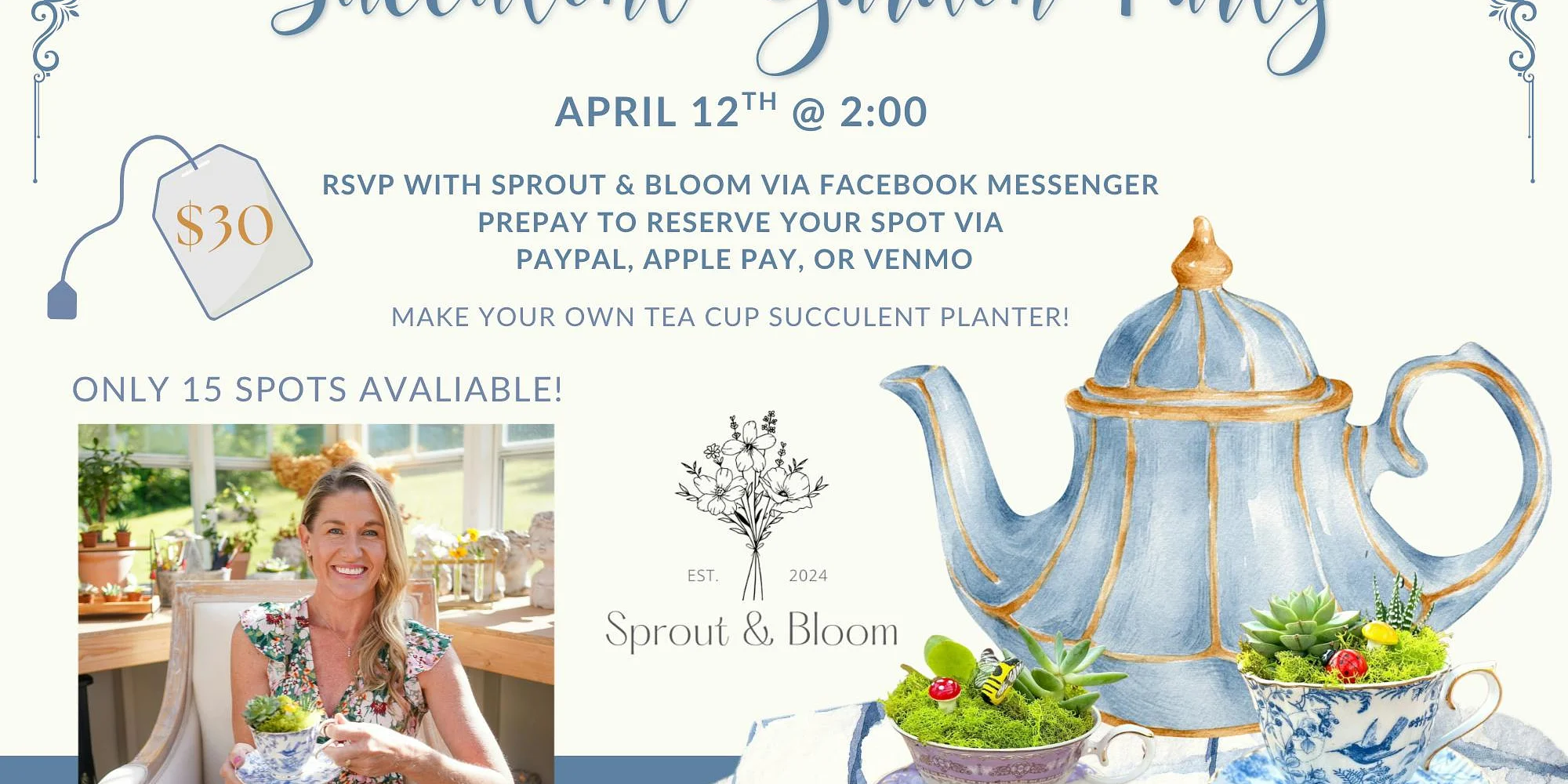 Spring is here, succulents are hardy… Let’s have a tea party! Tea Cup Planter Workshop Join Courtney with Sprout & Bloom for a hands-on workshop and create your own Succulent Tea Cup Planter! Courtney will guide you step-by-step as you design and create your own planter. Cost: $30 What you’ll get: * Stylish Tea Cup * Soil *2-3 Succulents * Decorative decorations to add * Moss Expert guidance and care instructions for your tea cup. It’s the perfect way to spend a beautiful afternoon outdoors, get creative, and bring a little bit of nature indoors. No prior experience is needed—just bring your creativity! Limited spots (only 15 available!), so don’t miss out! Secure yours by contacting Courtney at Sprout & Bloom to RSVP and prepay via PayPal, Apple Pay, or Venmo.