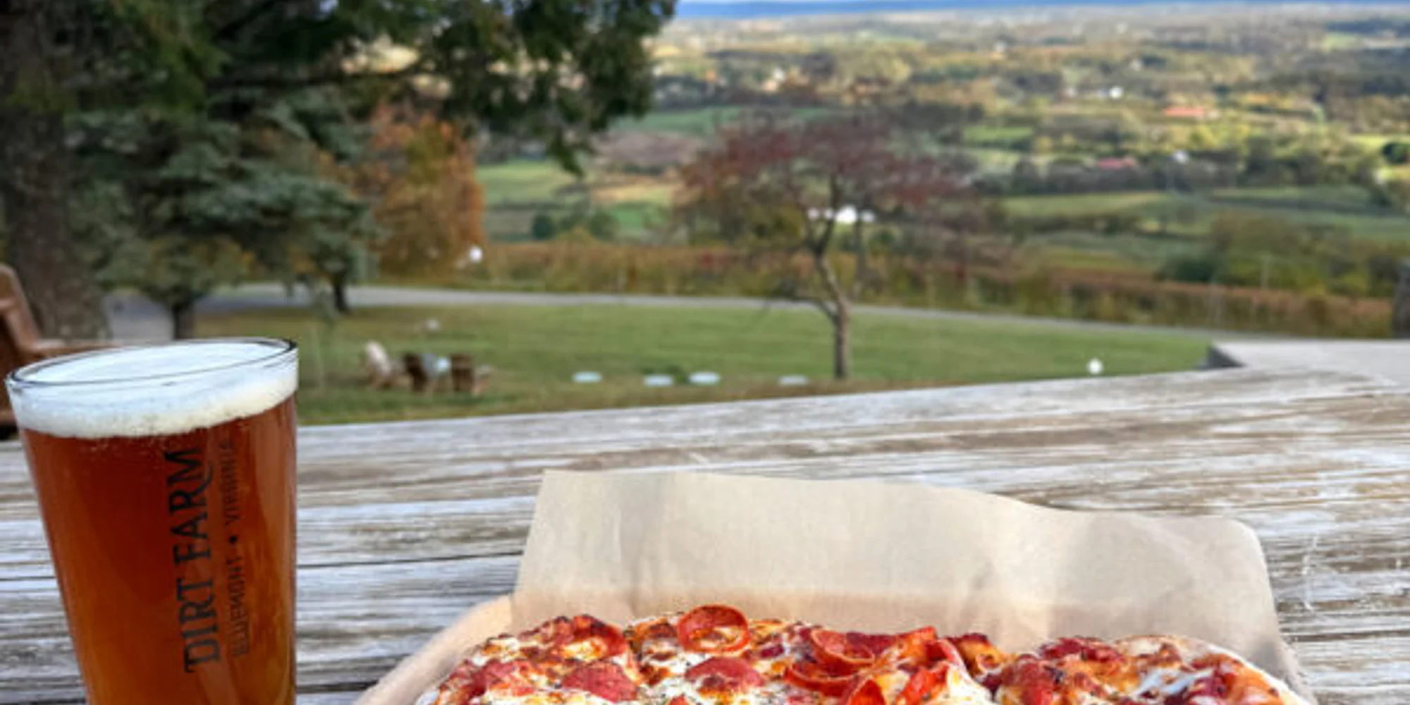 Join us Tuesday, Wednesday and Thursday for Happy Hour at Dirt Farm Brewing! There’s just something that makes us happy about happy hour! Enjoy epic deals from 3:00 p.m. – 5:00 p.m. every Tuesday, Wednesday and Thursday! Half Price Pints will be available from 3-5pm – keep your eyes on the clock, the taps close 15 mins. prior to our Taproom Closing! Half Price Pizzas will be available from 3-4pm – the Kitchen closes at 4pm! Don’t be late or you’ll miss out on these awesome deals! See what’s currently on tap, here! We offer a full tap list of farm-fresh beers carefully crafted on our 20 bbl brew system. With offerings from our Foundation, Homegrown, and Barrel Aged Series, there’s something for everyone! *Happy Hour is excluded on holidays. Make sure to grab some grub from The Truck while you’re here! Pizzas are half price! The Truck is open daily and features a rotating seasonal menu featuring local meat and produce, including produce grown right down the mountain at Great Country Farms! *Last pour is 15 minutes prior to close. Whether you’re coming out from Washington D.C., Alexandria, Arlington, or Baltimore, or you’re just cruising over from Round Hill, Purcellville, Clarke County, or Winchester, we’re always glad to welcome friendly faces here in Bluemont—near or far. Our community stretches across the region, and nothing makes us happier than sharing good beer, great food, and even better company with all of you right here in Loudoun County, Virginia! Check out our upcoming events to see what else we have going on here at Dirt Farm Brewing: CLICK HERE! Experience Bluemont – See what other fun stuff we have going on in Bluemont, Va by clicking, here! Make sure to check out our sister businesses, Great Country Farms, Bluemont Vineyard, Henway Hard Cider, and Experience Bluemont! ENJOY OUR FARM FRESH CRAFT BEERS AT OUR SCENIC LOCATION When you visit us at Dirt Farm Brewing, we hope that your experience is a true connection with the land and community. With our taproom and expansive patio comfortably nestled on the Blue Ridge mountainside, panoramic views of the Loudoun Valley can be taken in from all angles. Enjoy a pint of farm raised beer while overlooking the field in which it was grown. With each sip we hope you can taste the fresh mountain water which runs underfoot, the ripe produce that has been thoughtfully incorporated, and the sense of home, which we taste with every pint. We encourage you to sit back, kick your boots off and share a beer with us!