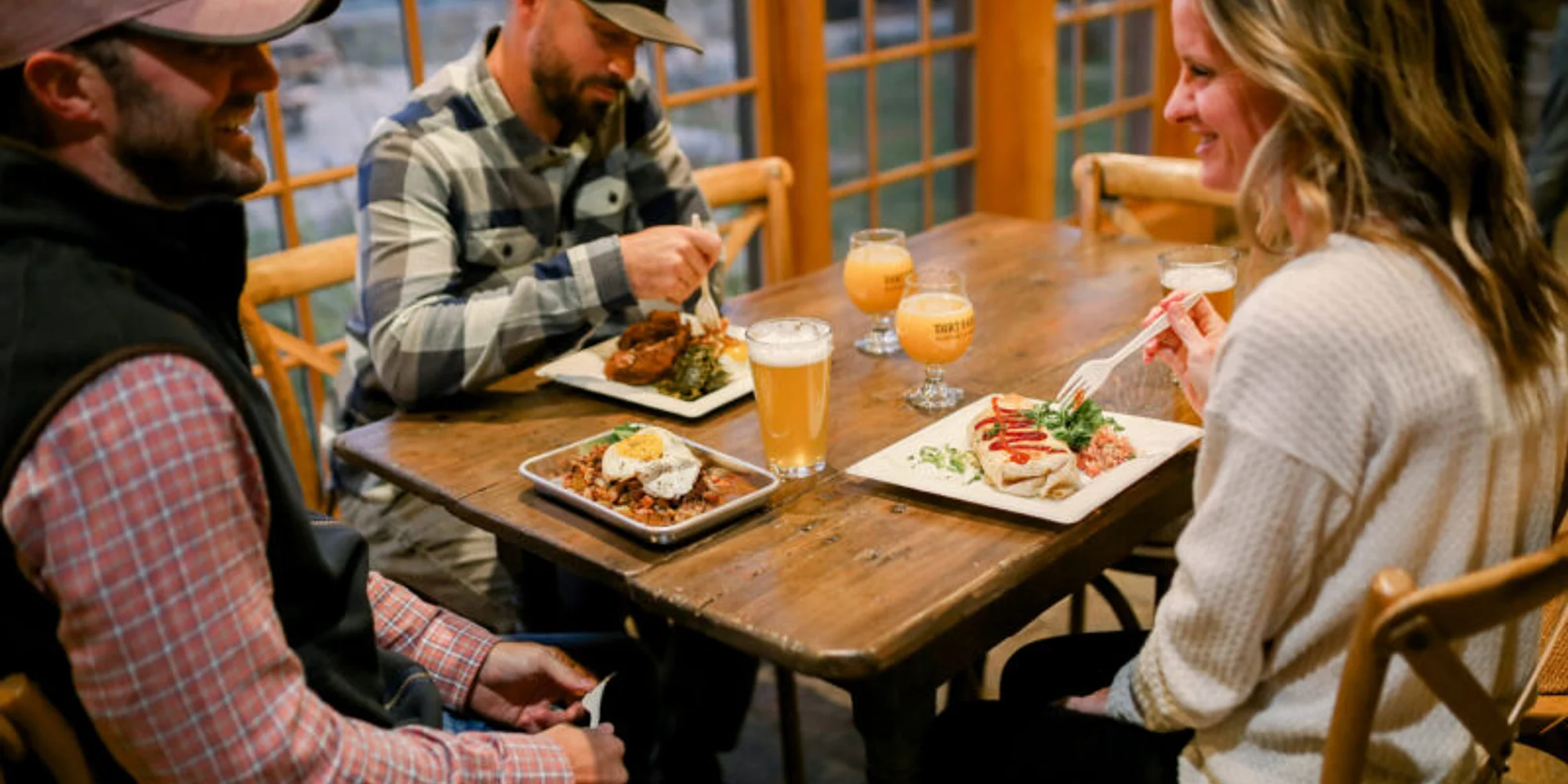 If mimosas and mountains are your vibe, then Rise & Climb Sunday Brunch is your perfect weekend adventure! Start your Sunday on The Trails at Dirt Farm – they open at 9am! Make sure to swing by the Taproom before your hike to grab a token for 50% off your first pint when you return. The Trails are a 3.5 mile wooded loop through the Blue Ridge Mountains located right here on our family’s property! Then, refuel and relax with a delicious farm-fresh Sunday brunch beginning at 10am ’till the kitchen closes at 4pm, featuring rotating seasonal specials! Sip on a boozy Mimosa Mountain Water or a perfectly spiced Bloody Mary Mountain Water while soaking in the mountain views – you can check out what’s currently on tap, HERE. Pretzels and pizza join the lineup at 11am, and our regular menu rolls out at noon — so you can keep the good times going all day long. Rise and climb, stay for the Sunday brunch, and make your day a little more scenic in the village of Bluemont! Whether you’re coming out from Washington D.C., Alexandria, Arlington, or Baltimore, or you’re just cruising over from Round Hill, Purcellville, Clarke County, or Winchester, we’re always glad to welcome friendly faces here in Bluemont—near or far. Our community stretches across the region, and nothing makes us happier than sharing good beer, great food, and even better company with all of you right here in Loudoun County, Virginia! And don’t forget – as Bruce always says, “No bad weather, just bad gear”, so dress for a day outside on the mountain!