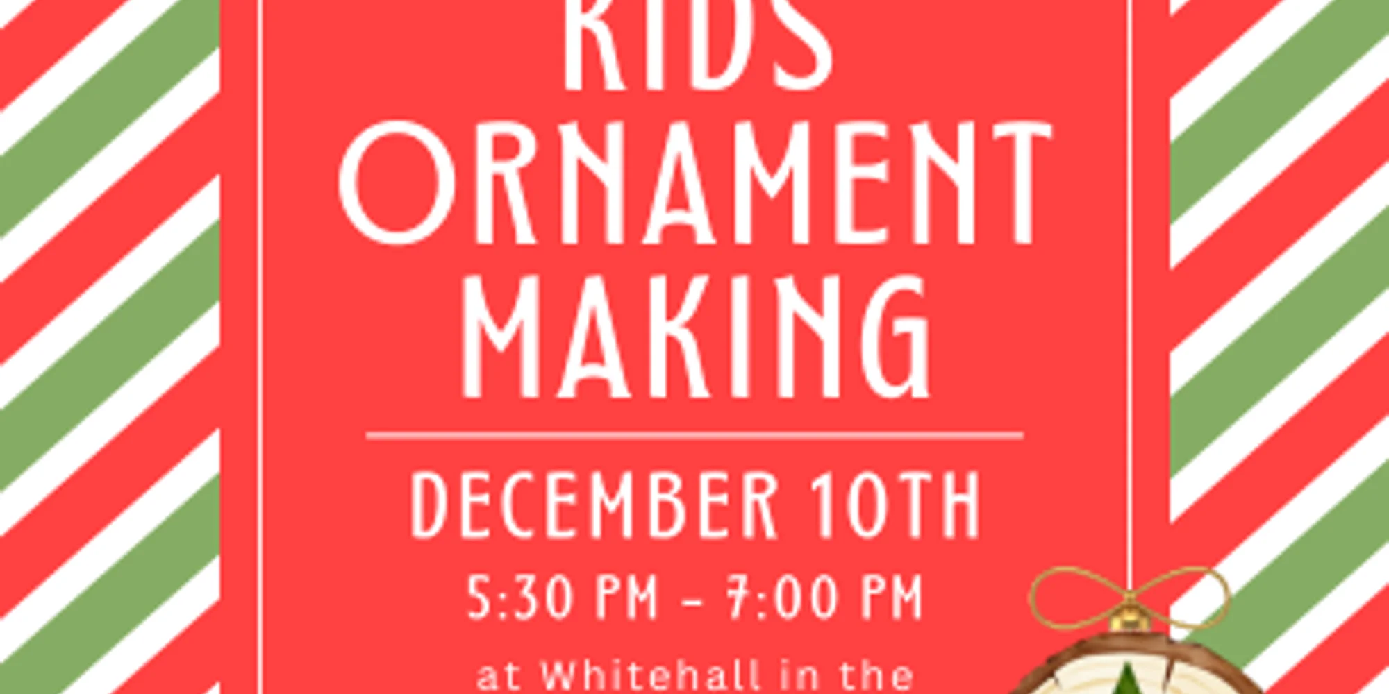 Join us at Whitehall for a fun-filled Kids Ornament Making activity on December 10th from 5:30 pm to 7:00 pm! Children of all ages can paint unique ornaments to take home and hang on the Christmas tree. It’s the perfect way to get into the holiday spirit with family and friends. All supplies included. PURCHASE TICKETS HERE!