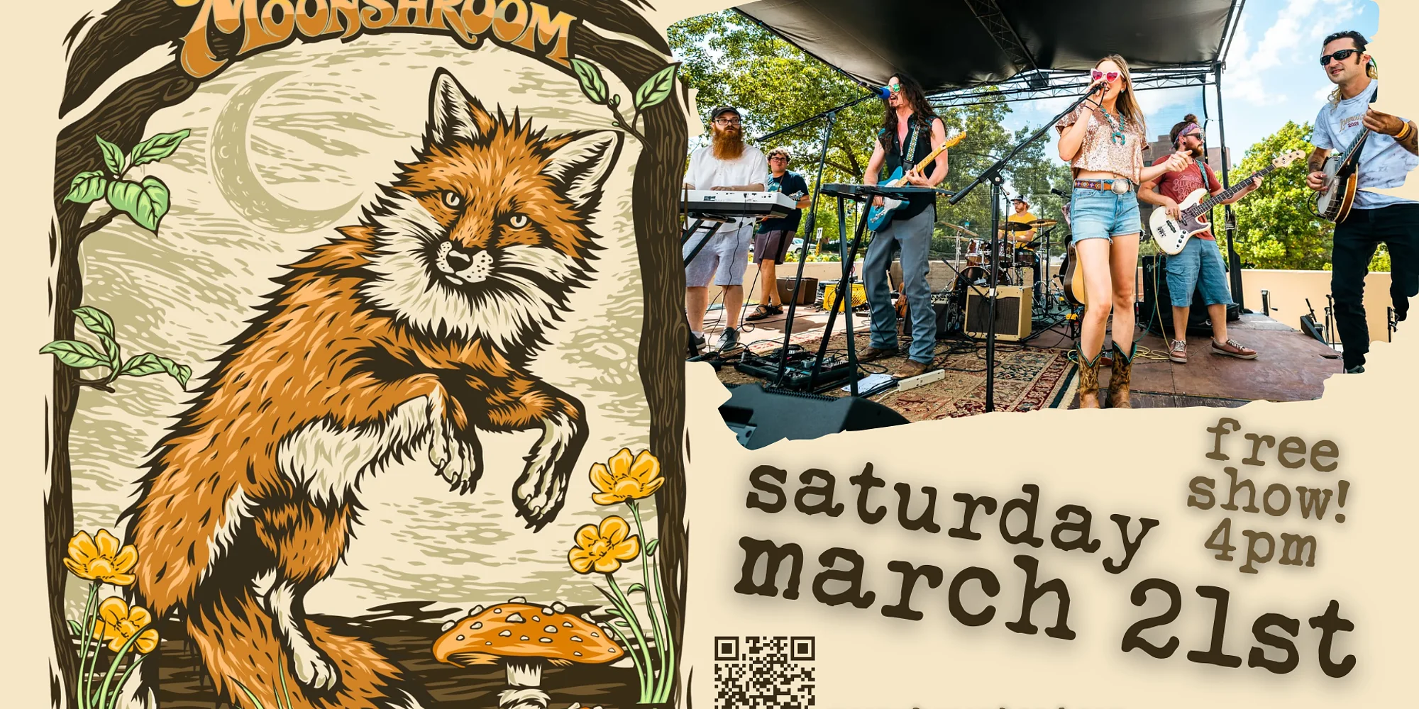 MOONSHROOM returns to the Divine Barrel stage on Saturday, March 21st for a free afternoon show! Music kicks off at 4pm, but roll in early for drinks and grab some killer food from Chez Moi! — MoonShroom is the star crossed culmination of liberated artistic expression & high energy performance. Genuine songwriting is at the core of this dynamic project. Fueled by the song craft of Lily B Moonflower & Jake Keegan, the act hones their unique sound with genuine lyrics, tight vocal harmonies, and intricate instrumental conversation. The group, hailing from Lawrence Kansas, performs captivating sets on stages far & wide. Featuring Lily B Moonflower on guitar & vocals, Jake Keegan on dobro & vocals, Zach Bozeman on upright bass, & Colby Allen Walter on mandolin, electric guitar & vocals. Together they create a unique sonic tapestry, building a bridge the audience can cross to feel a oneness with the musical energy radiating from the stage! Expanding upon stylings of Americana, bluegrass, folk, and country — the group sends their sound into the stratosphere with their signature spin of “Grassadelic Twang”. MoonShroom tours heavily in the festival circuit, and at venues around the country — Hop in the cosmic train and come PARTY ON THE MOON!
