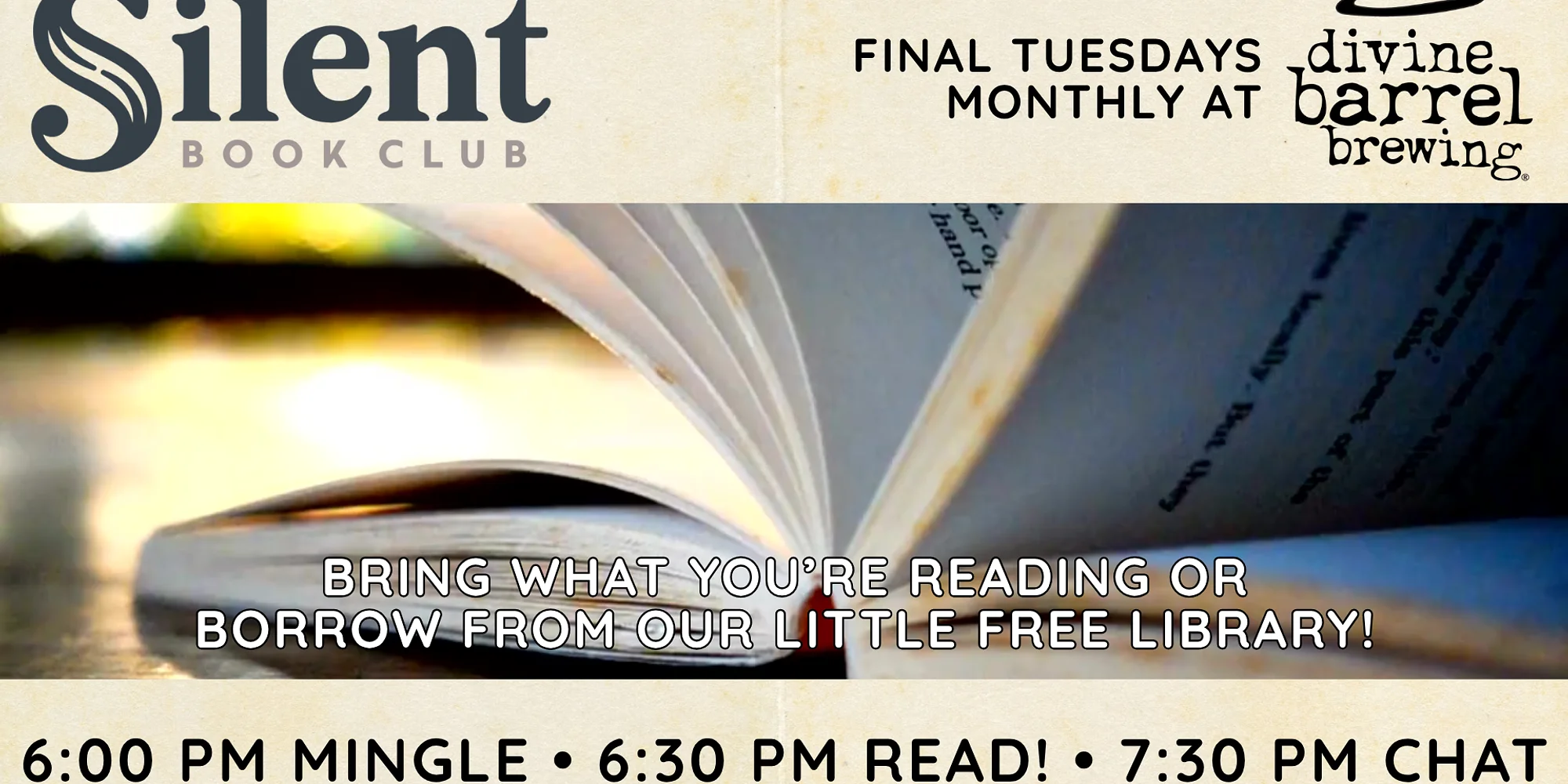 Read alone, together! Join the Silent Book Club at Divine Barrel on the final Tuesday, every month starting at 6pm! Each month, bring a book you’re currently reading (or borrow one from our Little Free Library) for a quiet reading group with the Nodahood community. A typical SBC night goes like this – 6pm: Welcome, meet, grab a drink & mingle! 6:30pm: Read silently with the club. 7:30pm: Break to chat, discuss, or… keep reading! We’re open nightly ’til 10pm, so the rest of the evening is yours! What is a Silent Book Club? Click here for more information! Silent Book Club at Divine Barrel is a member chapter of Silent Book Club®. Silent Book Club® is a registered trademark of Silent Book Club LLC. All rights reserved. Want to know more? Visit the website at https://silentbook.club/ for more information!
