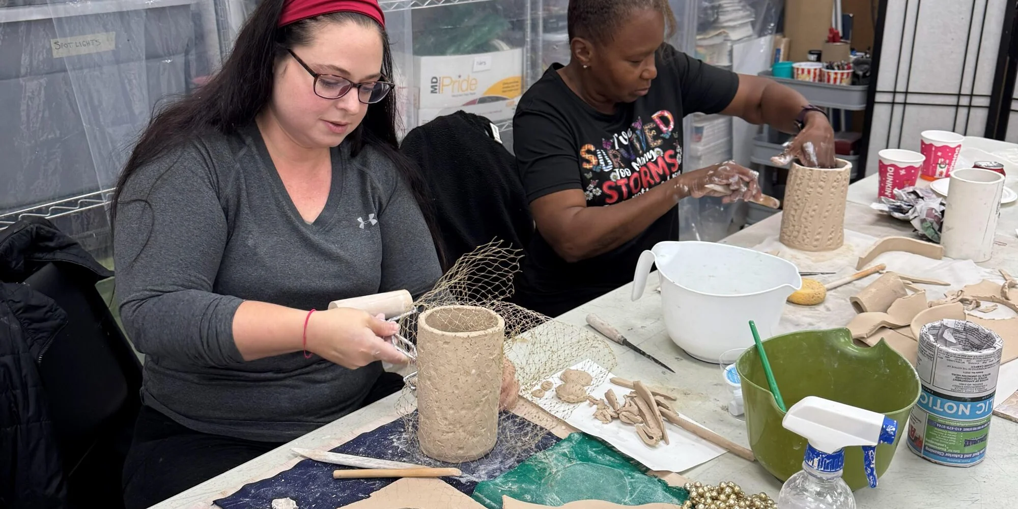 Coffee and Pots is a fun, relaxing workshop that combines creating a piece of pottery in a social setting. You will learn techniques to either hand build or create your piece on the potter’s wheel. over a cup or coffee and light snack. This is a great class for individuals, or couples. Coffee and pastries included. Minimum 4. Maximum 10 students Materials: All materials supplied.