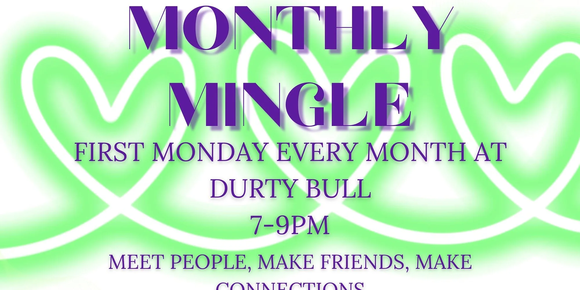 Single and looking to meet someone? Want a new friend and good conversation? Monthly Mingle is perfect for you! We’ll have conversation starters and games ready to make it easy to meet that new person! We’ll also provide wristbands at the door so you can easily indicate if you’re looking for a friend, a partner, or if it’s complicated! Just let us know when you arrive which you’d like!