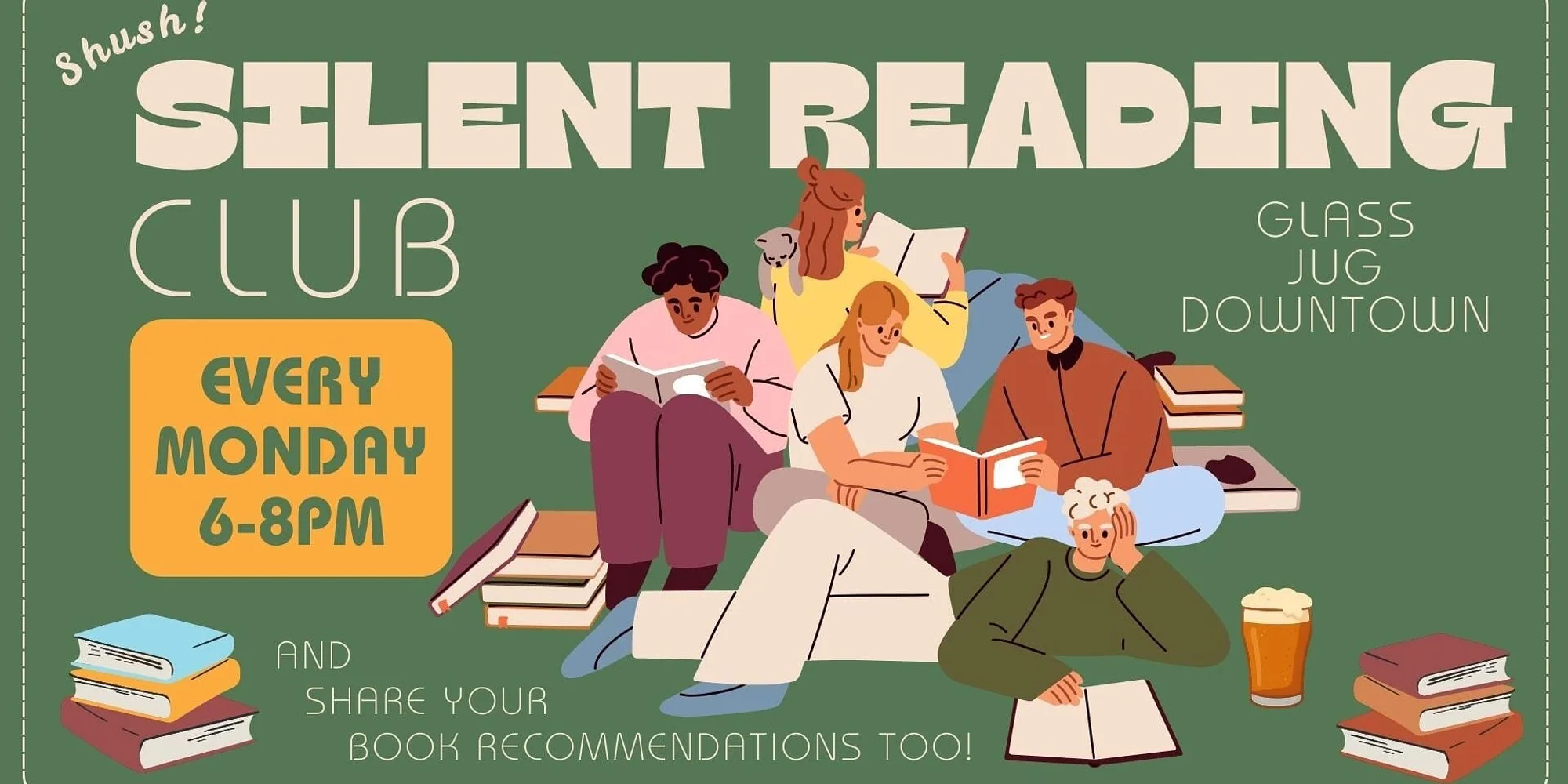 Love books but hate the “homework” of a traditional book club? Welcome to the Silent Reading Club at Glass Jug Downtown – the most social way to be antisocial! The concept is simple: No assigned reading. No pressure. Simply bring a book of your choice to read in our space and grab a drink from the bar. Find a place to sit and dig in. We’ll also be hosting an optional community book recommendation share at 7pm each week. View on Facebook. This event runs from Mar 9, 2026 to Jun 29, 2026 and happens every: Mondays:6:00pm to 8:00pm